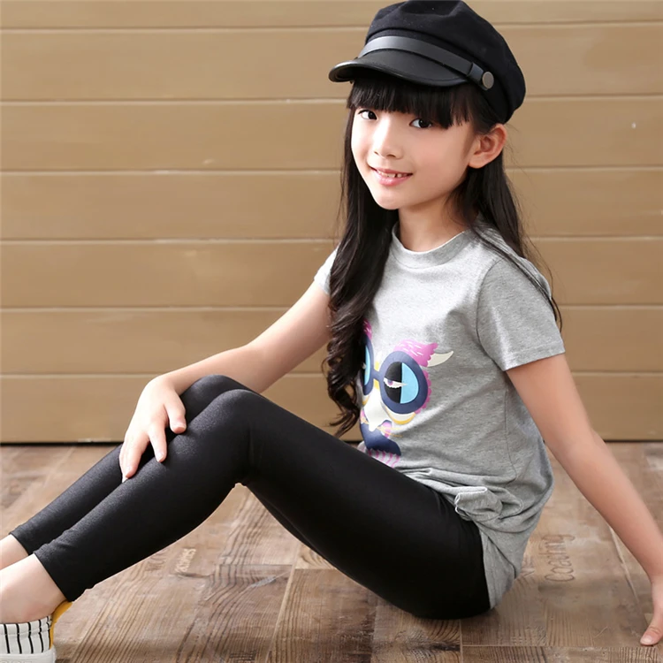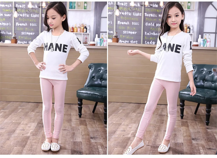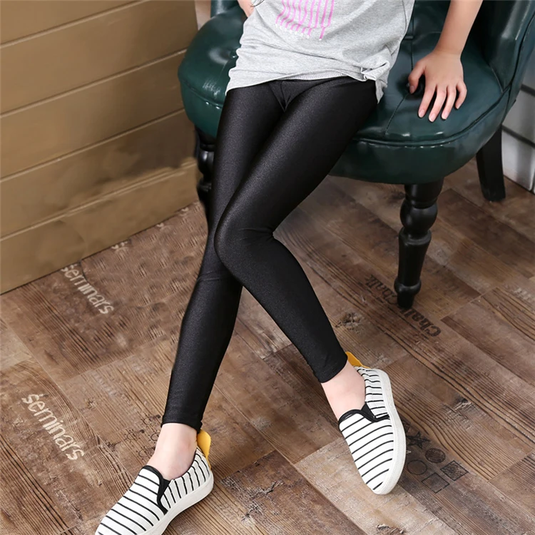 2-14 Years Girls Skinny Long Pants Shiny Black White Pink Children Bottoms Leggings Kids Elastic Trousers All-matches Leggings