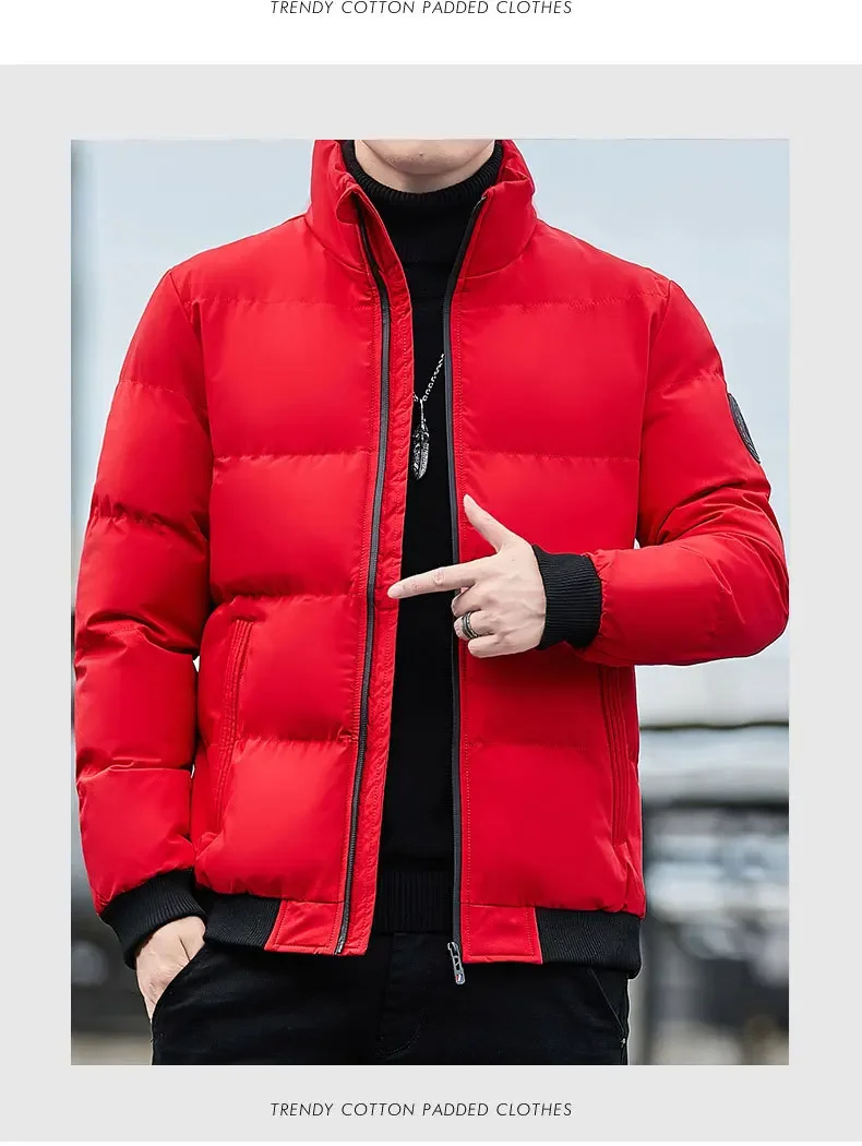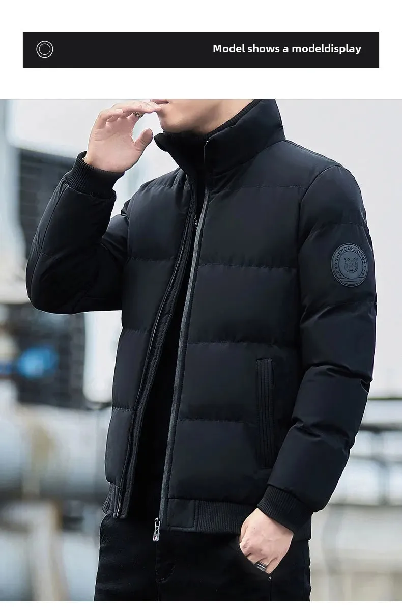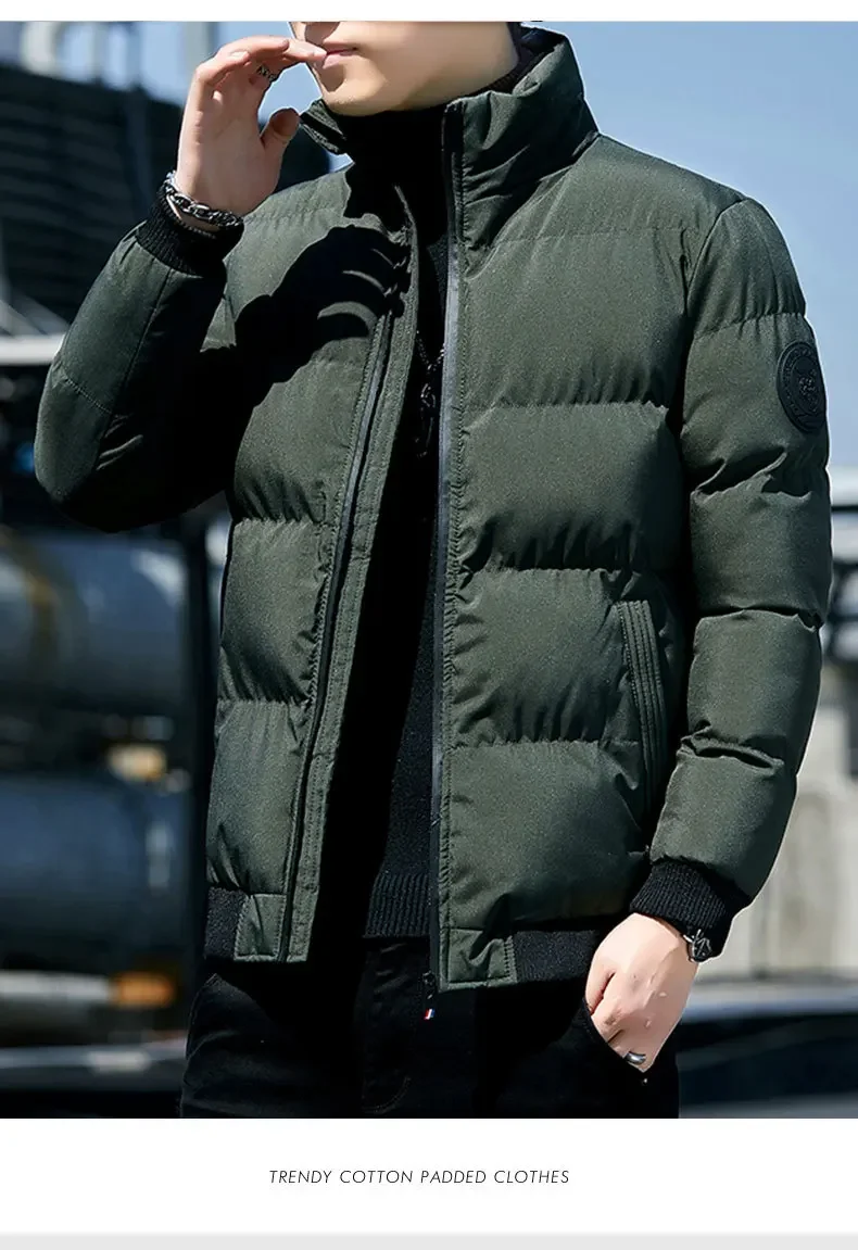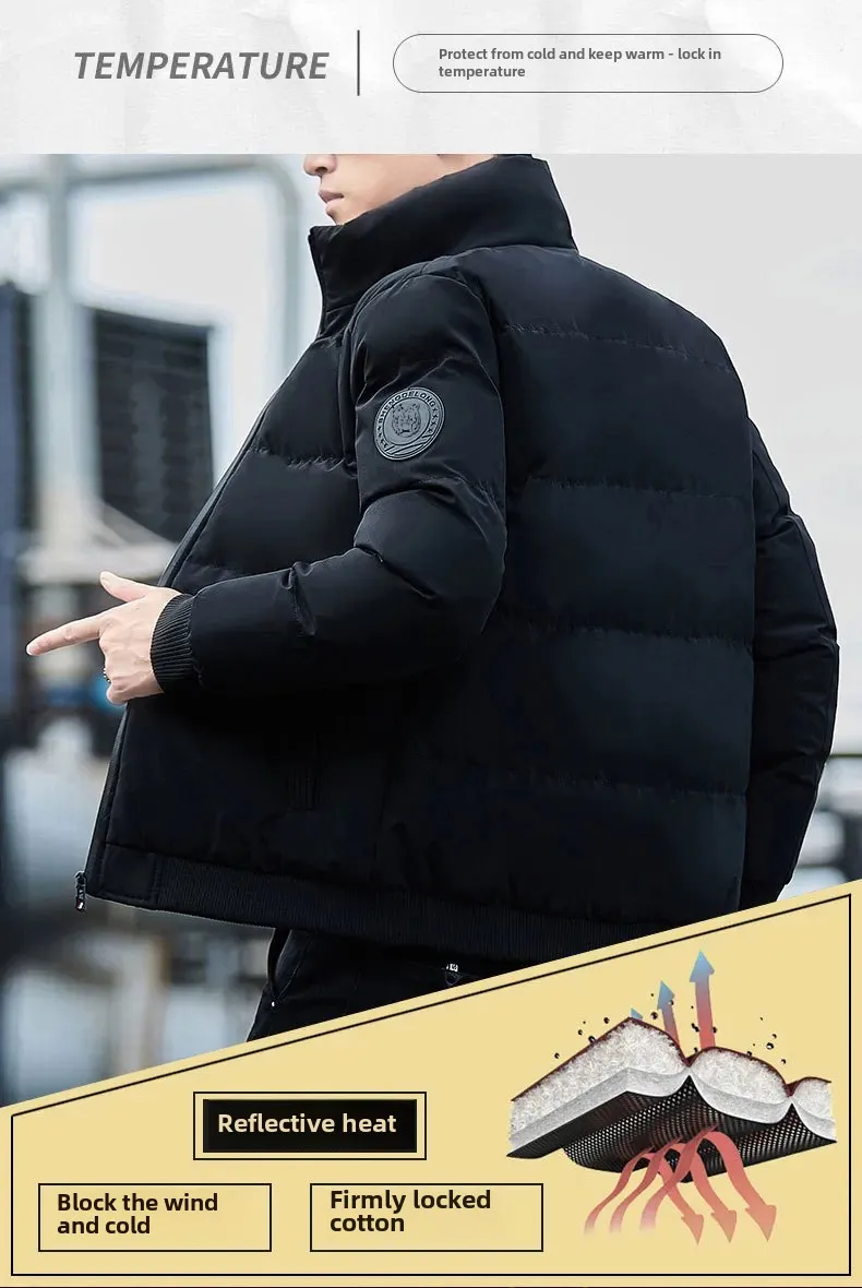 2024 New Men’s Cotton Coat Thickened Fleece-Lined Trendy Korean Style Student Jacket Winter Padded Jacket With Feather Lining