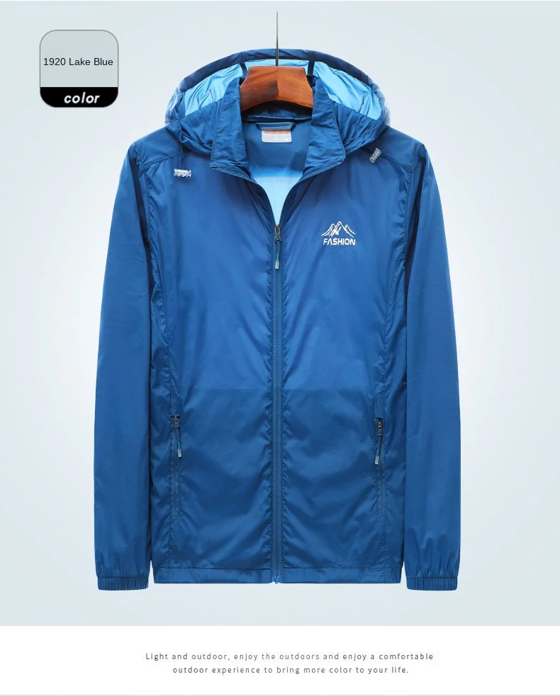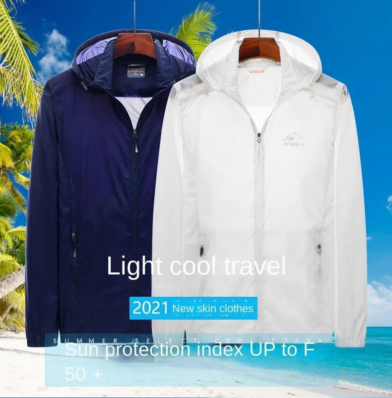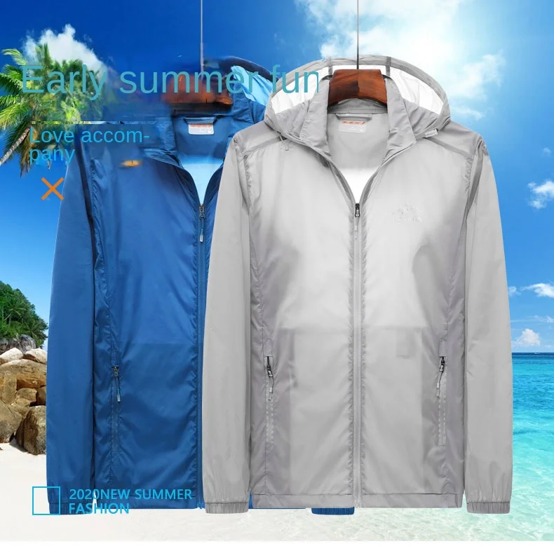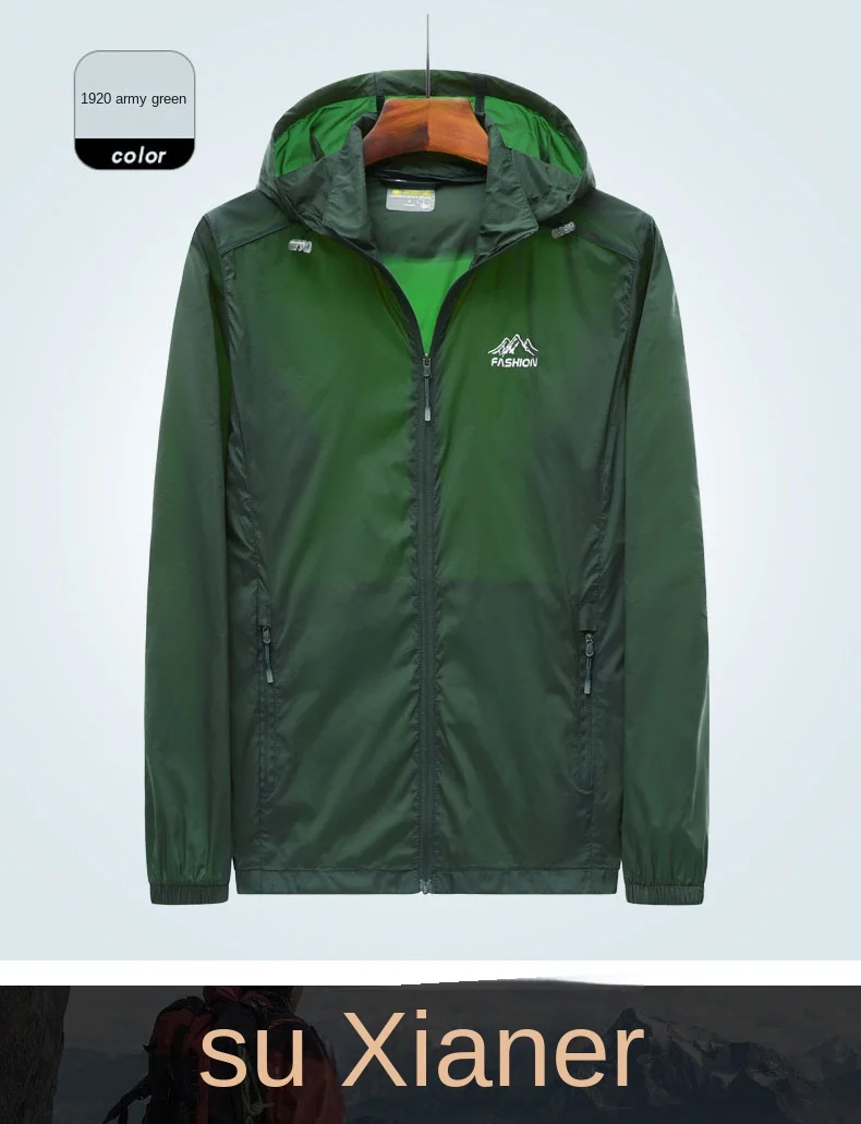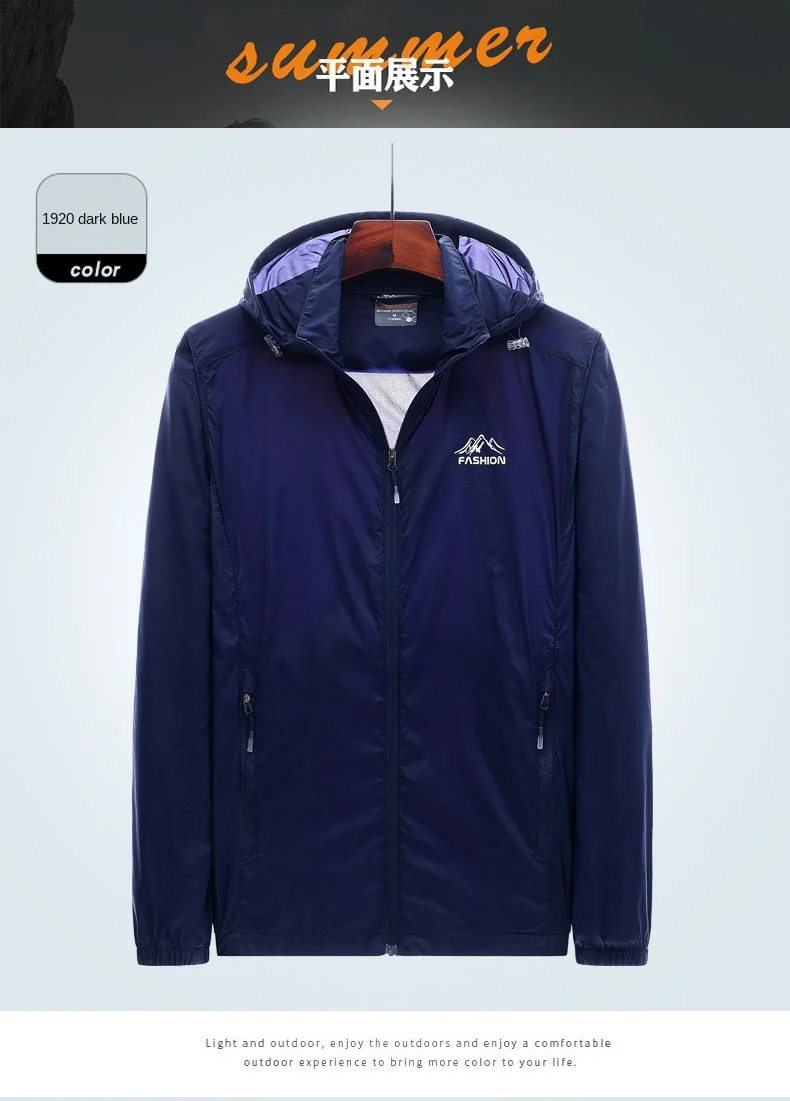 2024 Summer Hooded Sun Protection Clothing Men’s Lightweight Breathable Beach Mountaineering Fishing Sports Casual Trench Coat