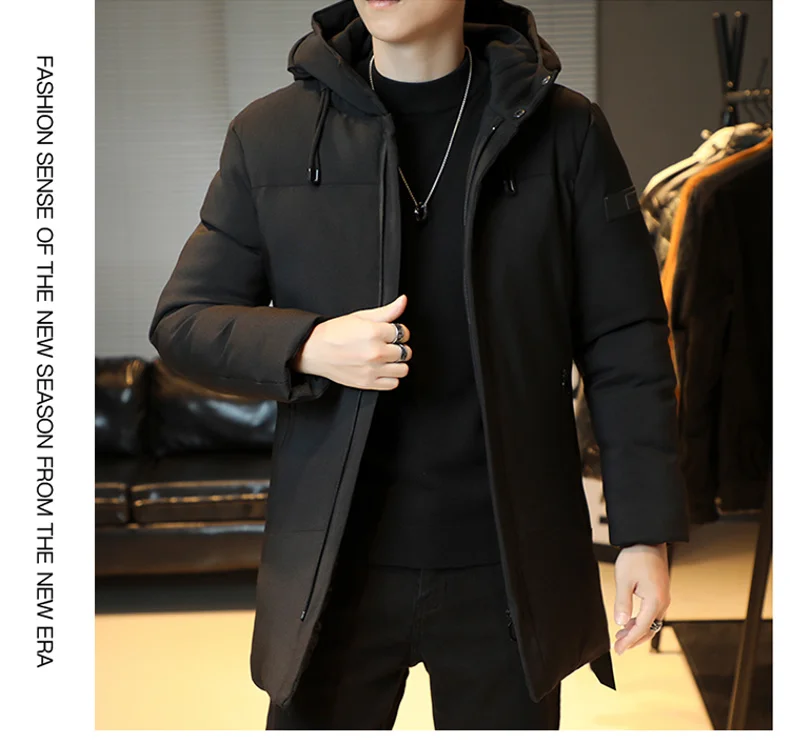 2024 Winter Long Jacket Men’s Business Trendy Thick Warm Parka Casual Male Ski Clothes Cold-proof Down Cotton Padded Hooded Coat