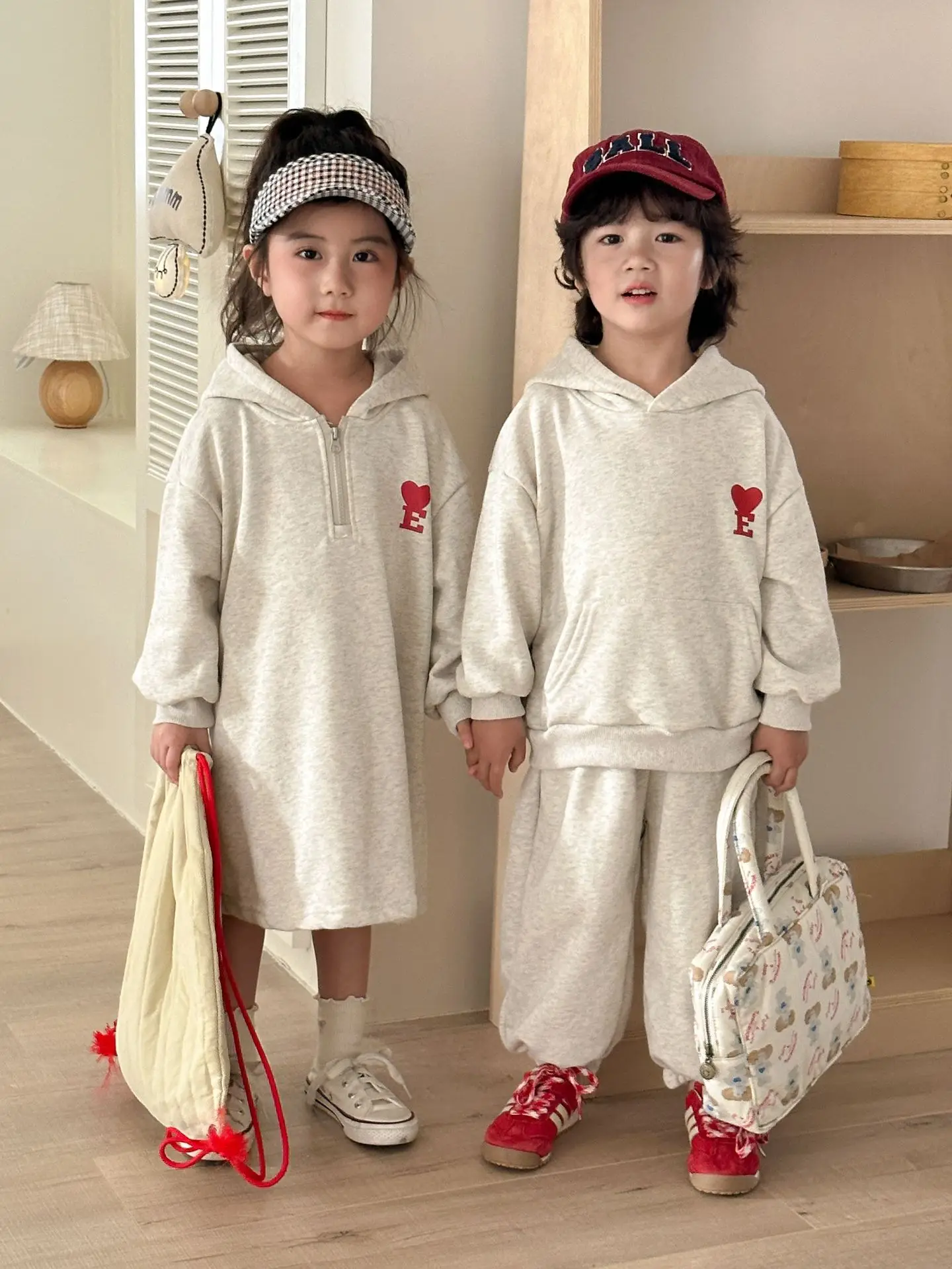 2025 Spring Children Sibling Look Set Cotton Hoodies Solid Pants Suit 1-10 Years Boys Outfits Simple Casual Kids Girls Dress