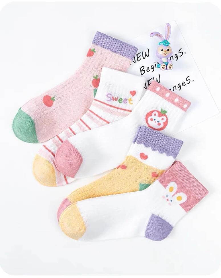 5Pairs 1-16Years Ultra Thin Breathable Mesh Socks Cartoon Children’s Fashion Cute Socks Stokings For Girl Boutique Kids Clothing
