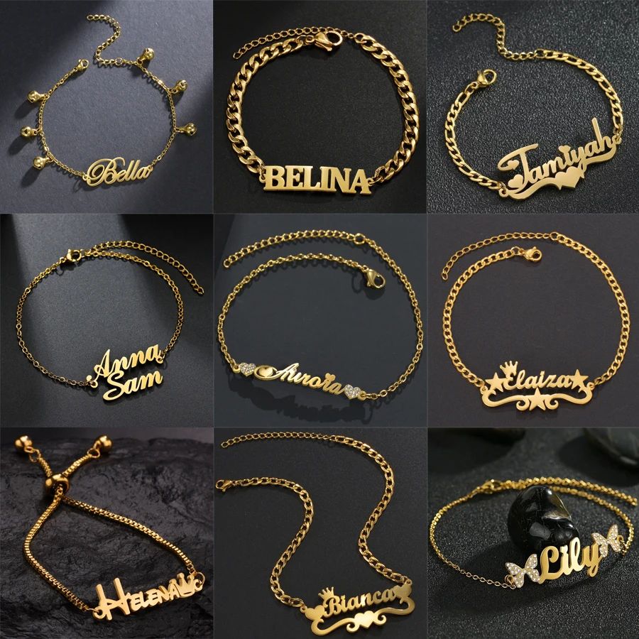 Acheerup Fashion Personalized Name 18cm Anklets for Women Men Stainless Steel Custom Letters Thick Leg Chain Jewelry Charms Gift
