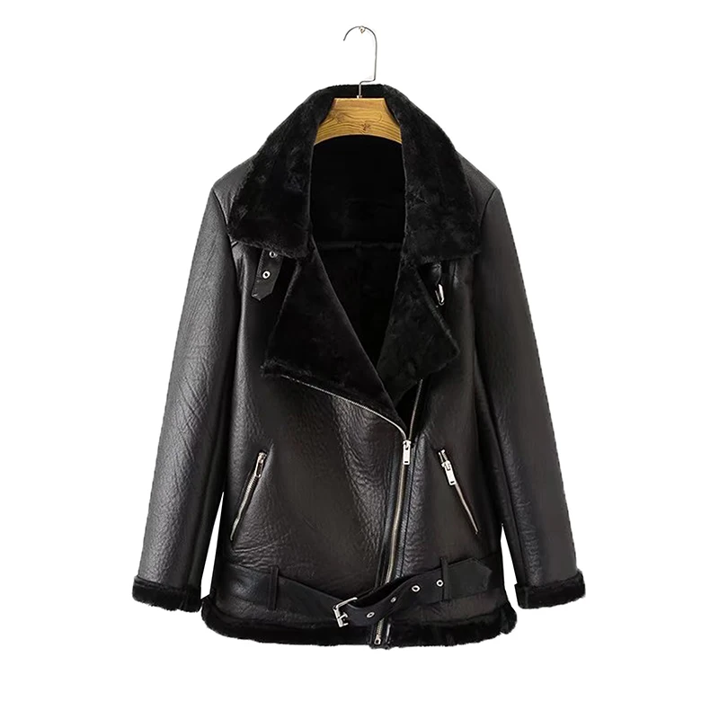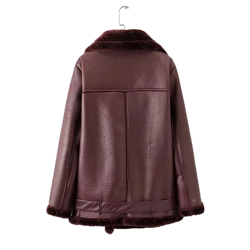 Ailegogo Winter Coats Women Thickness Faux Leather Fur Sheepskin Female Fur Leather Jacket Aviator Outwear Casaco Feminino