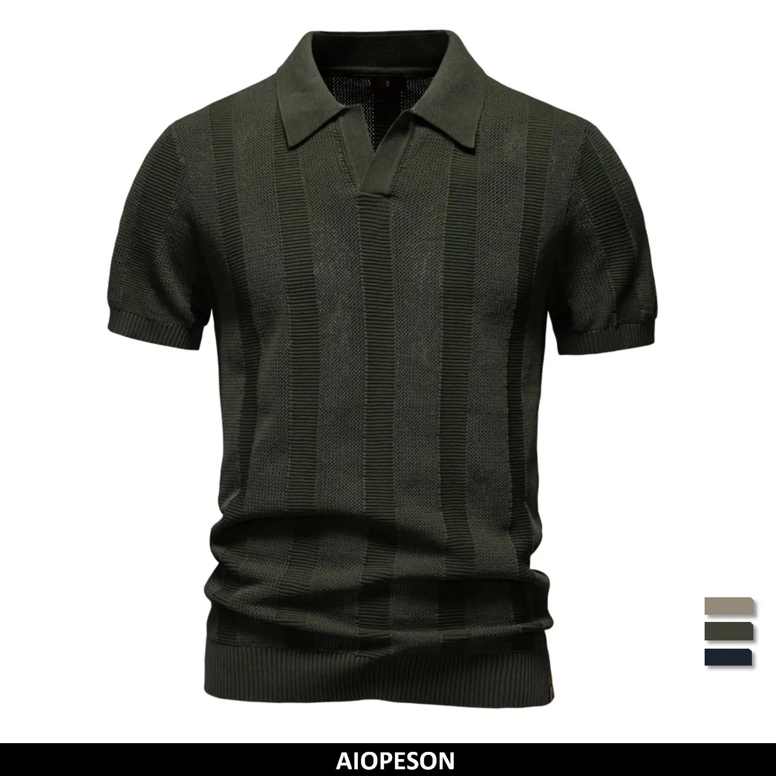 AIOPESON 2025 Men’s Solid & Striped Mesh Polo Shirt – Breathable Knit Casual Top with Turn-Down Collar