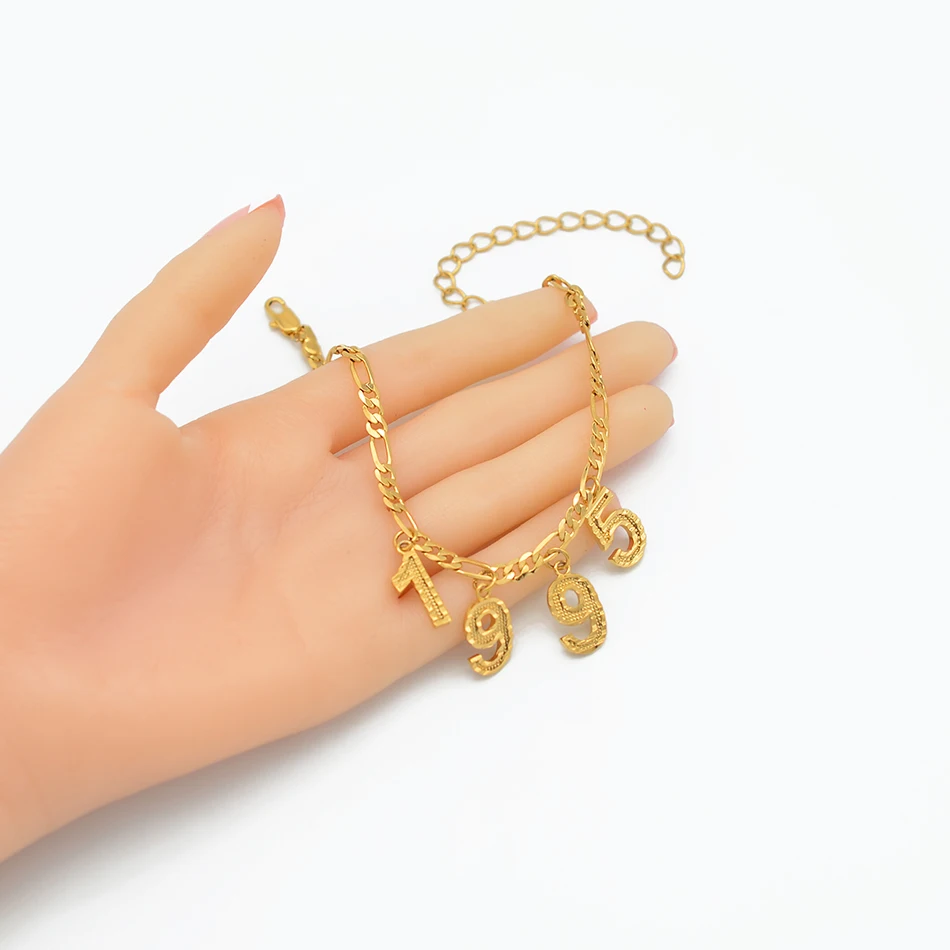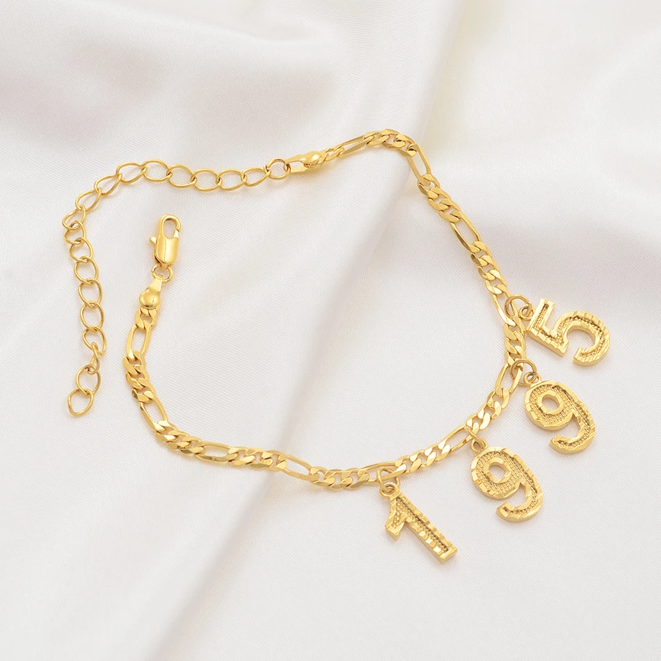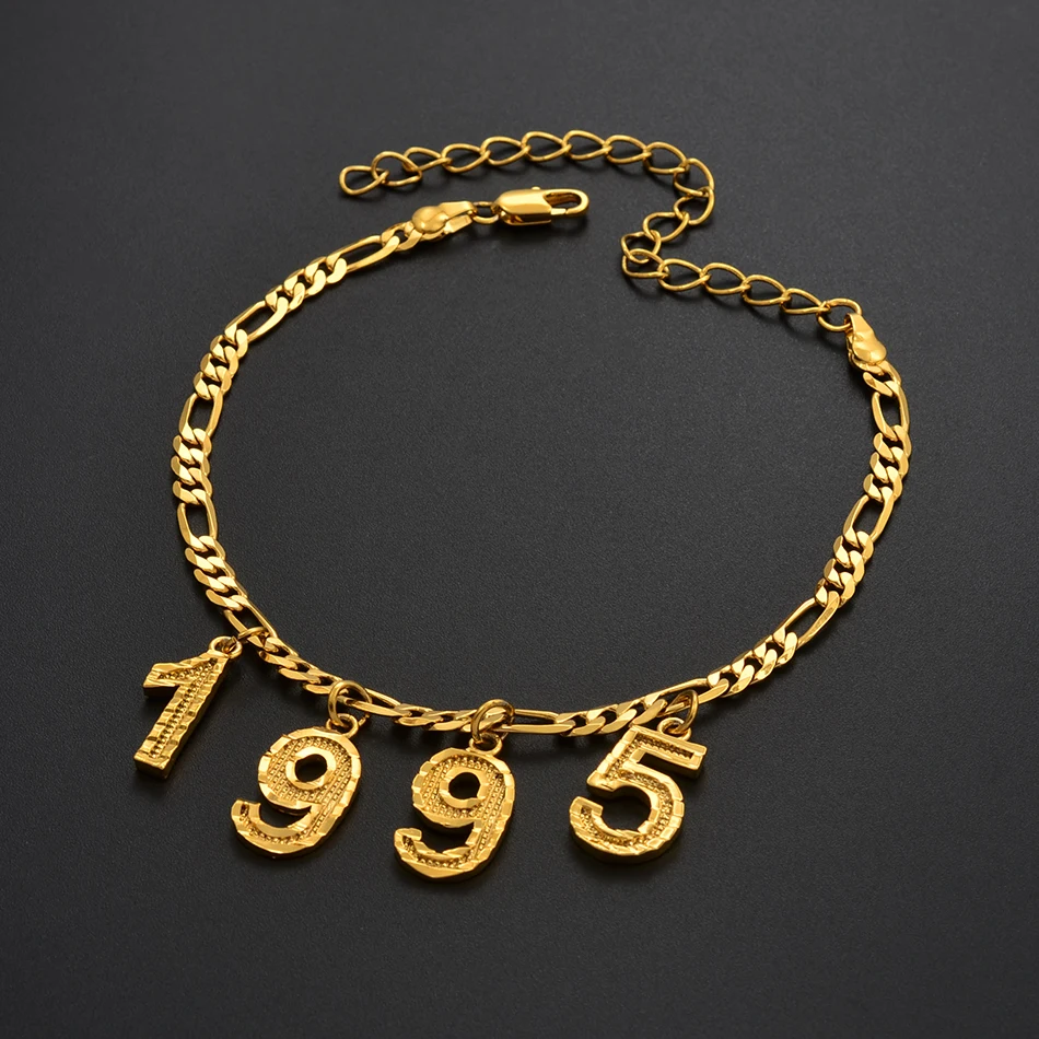 Anniyo Custom Digital Jewelry English Number Anklet Birthday Items Personalized Birth Year Foot Chains Women Mom Girls #214706