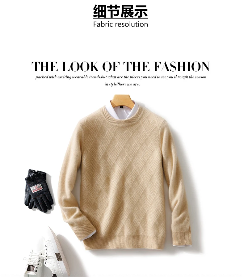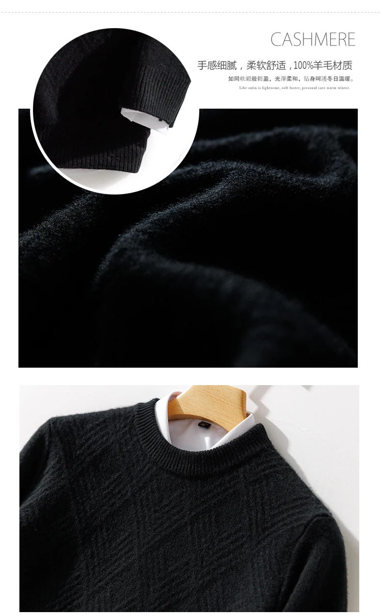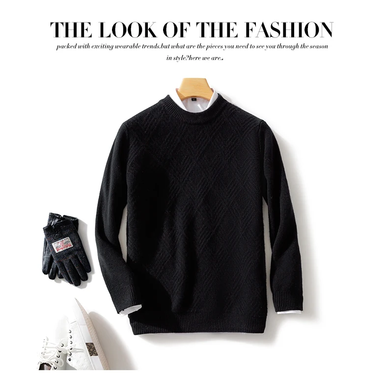 Autumn and winter round neck 100% wool sweater men’s sweater with knitted warm base sweater, high-end top
