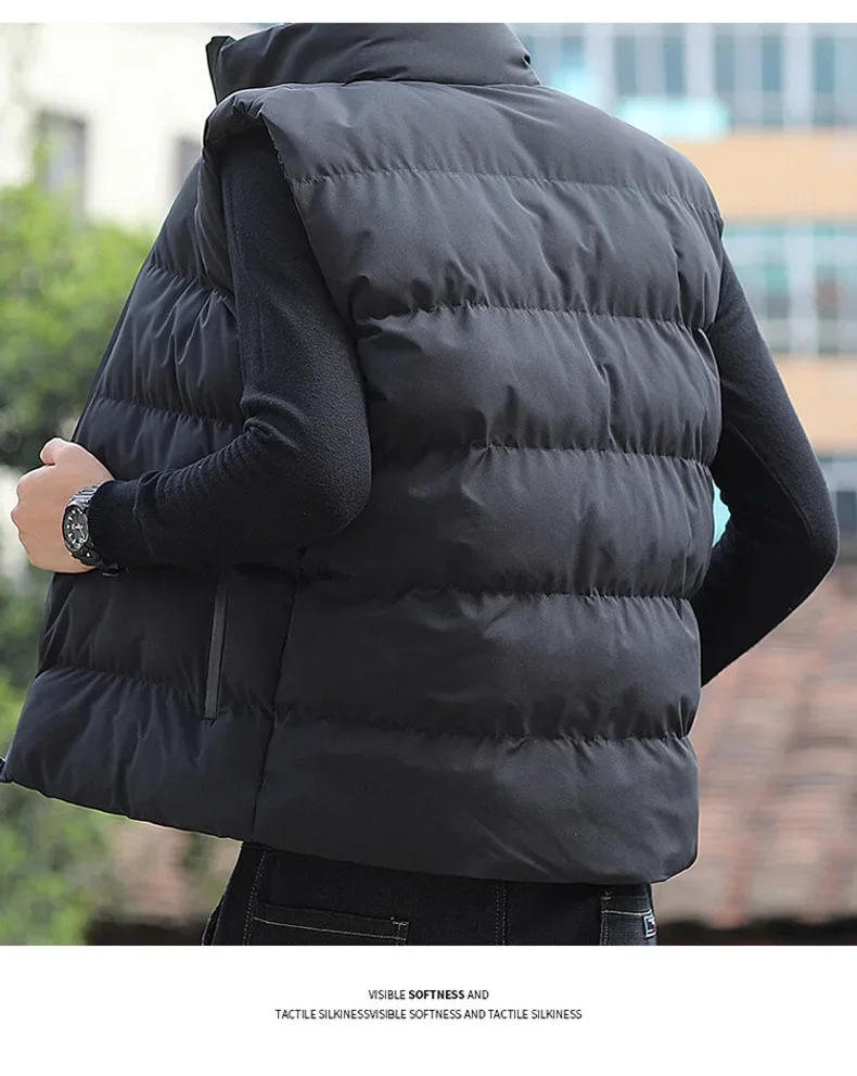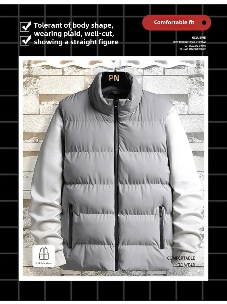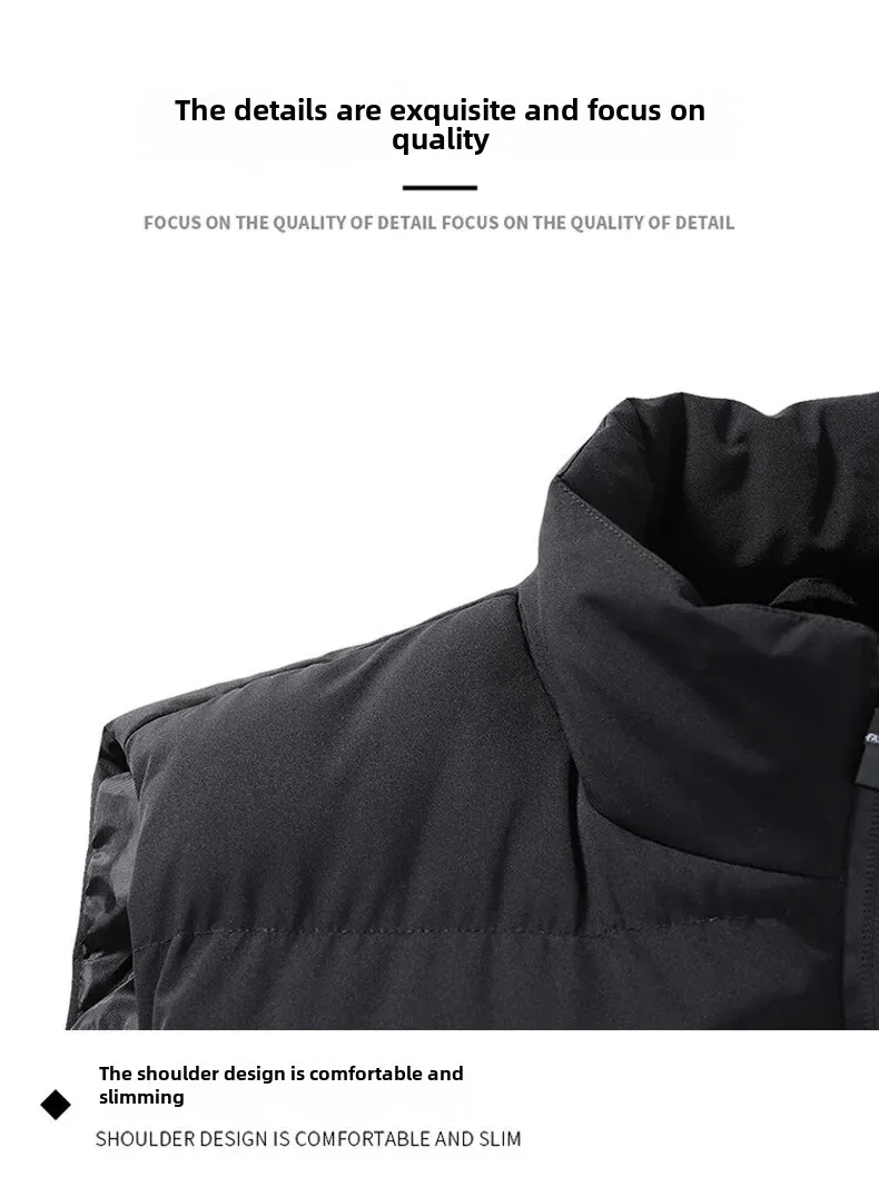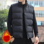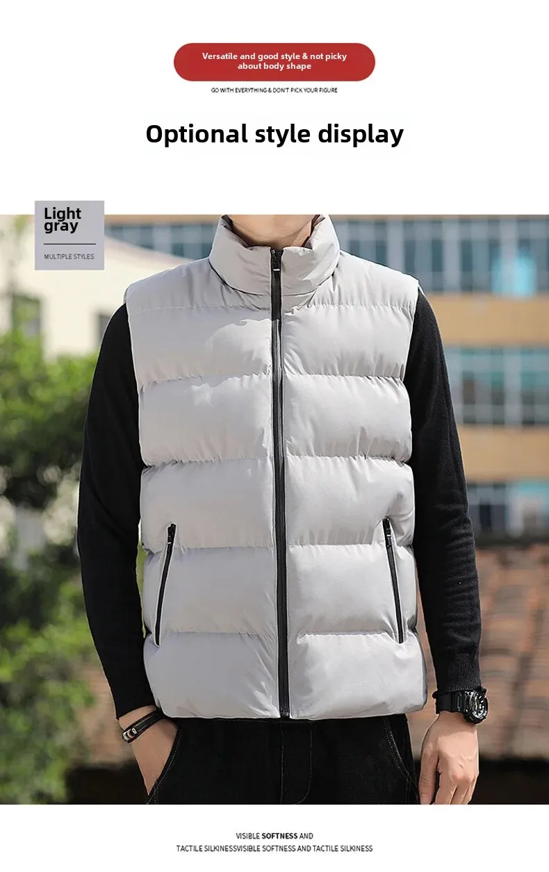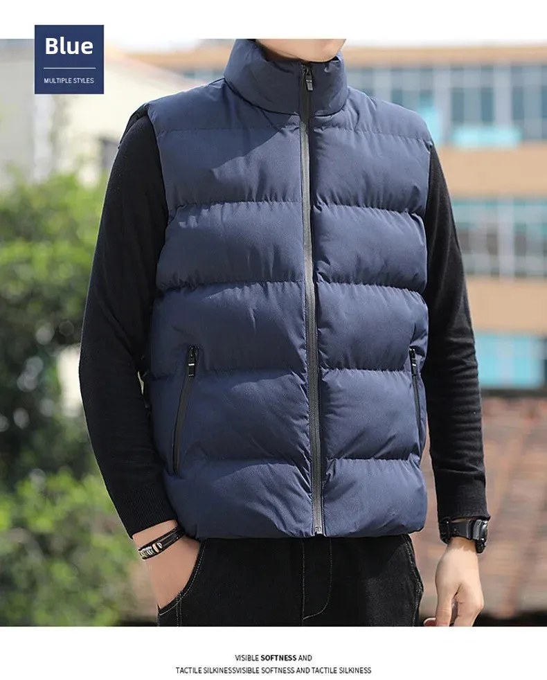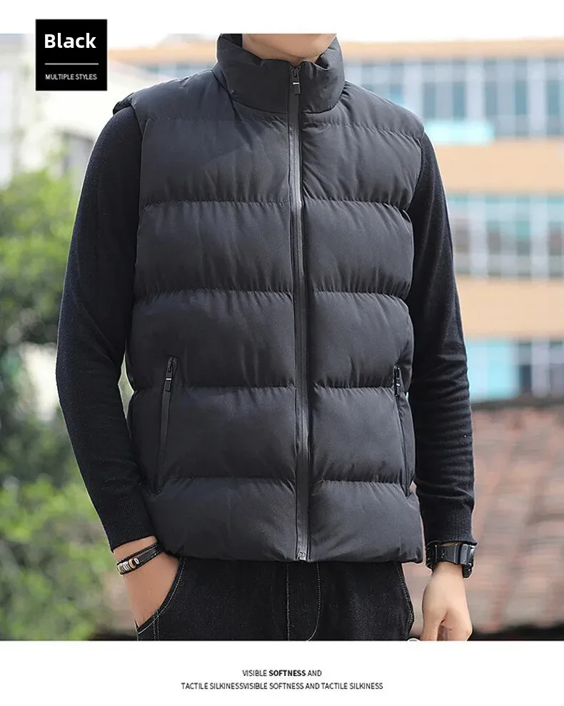 Autumn/Winter Men’s Thickened Cotton-Padded Coat Vest New Style Stand Collar Lightweight Warm Down Outerwear For Casual Scenes