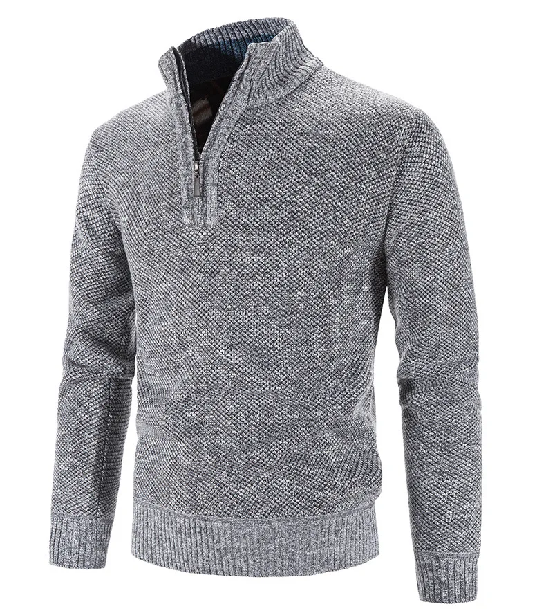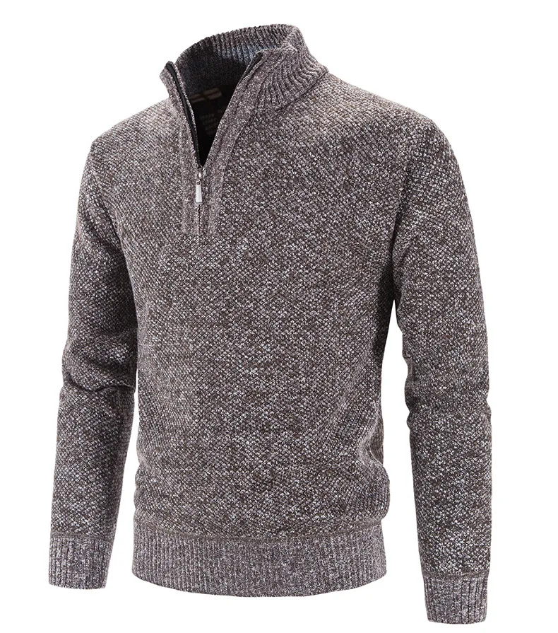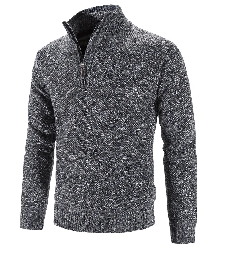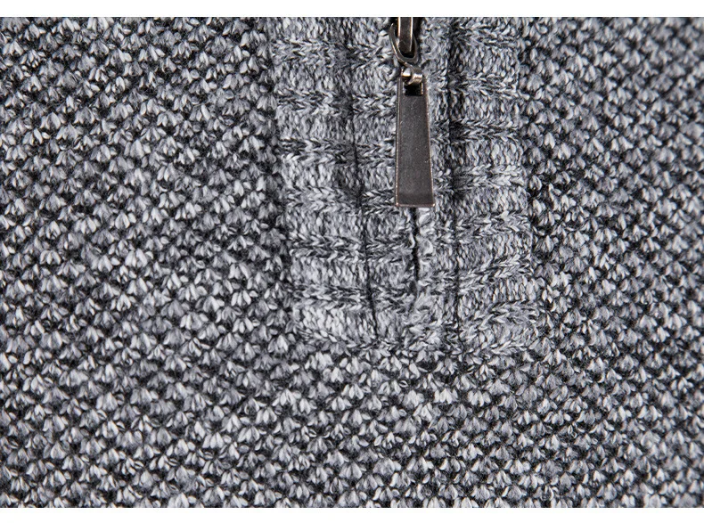 Autumn Winter Thick Knitted Sweater Men Pullovers Solid Color Zipper Mock Neck Slim Fit Knit Pullovers Men Causal Sweater Man