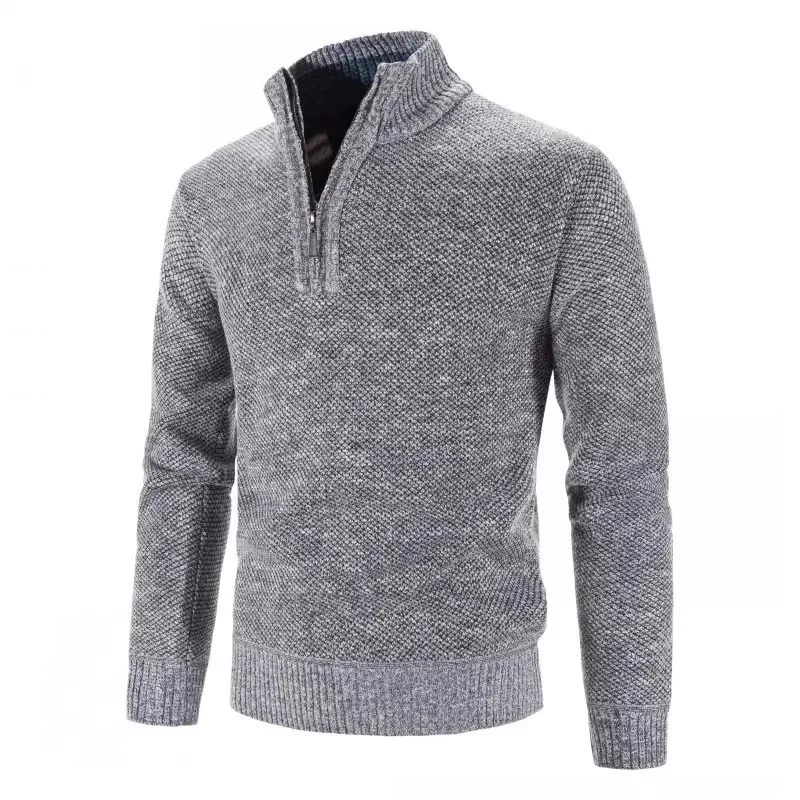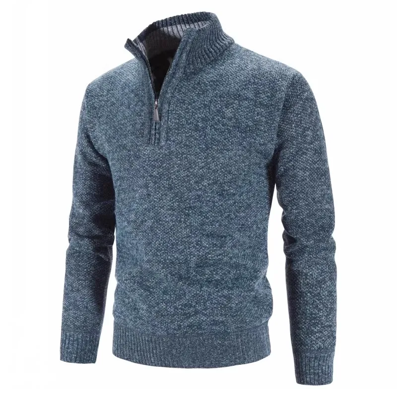 Autumn Winter Thick Knitted Sweater Men Pullovers Solid Color Zipper Mock Neck Slim Fit Knit Pullovers Men Causal Sweater Man