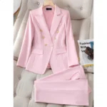 Be the first to review “Button Decoration Formal Jacket Blazer and Trouser 2 Piece Set Fashion Pink Green Black Ladies Work Wear Pant Suit Women” Cancel reply