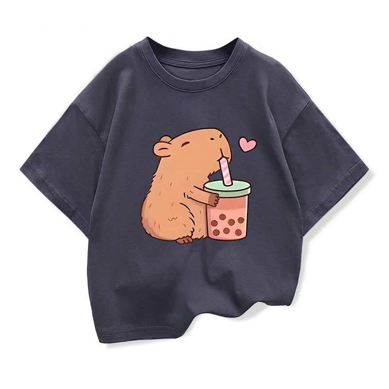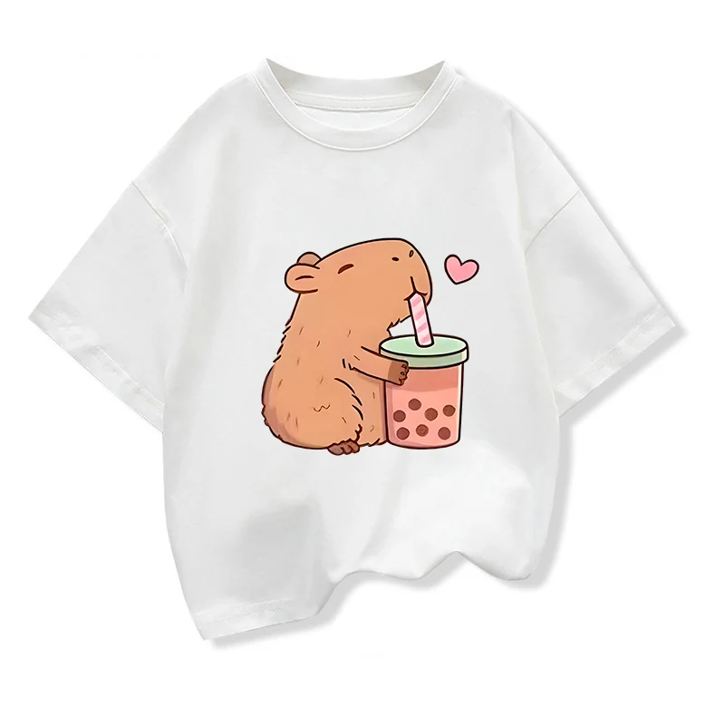 Capybara Kids Clothing Tees Summer Printed Cartoon Fashion Short Sleeve Girls T-shirt Popular Design Children’s T Shirts O-neck