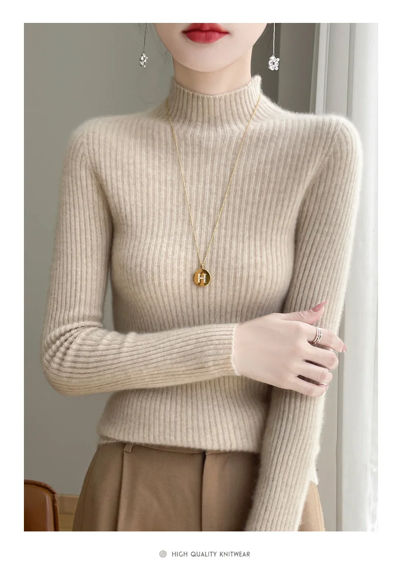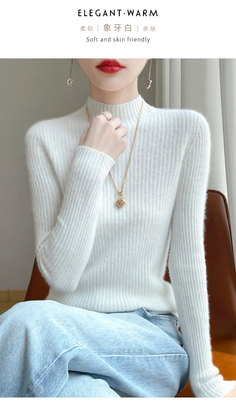Cashmere sweater Women Half Turtleneck Sweater Knitted Soft Pullovers Cashmere Jumpers Basic Soft Sweaters Women 2024 Autumn Win