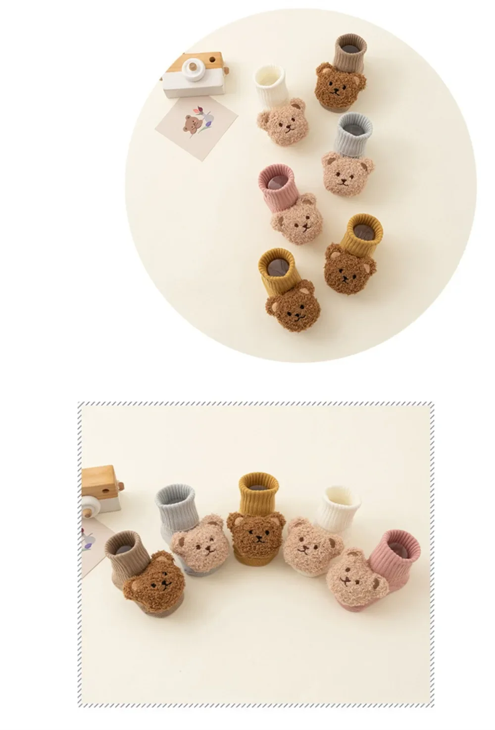 Cute Cartoon Bear Baby Socks for Boy Girl Winter Soft Cotton Anti Slip Soled Newborn Toddler Sock Kids Thicken Socken Warm Socks