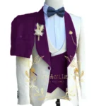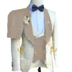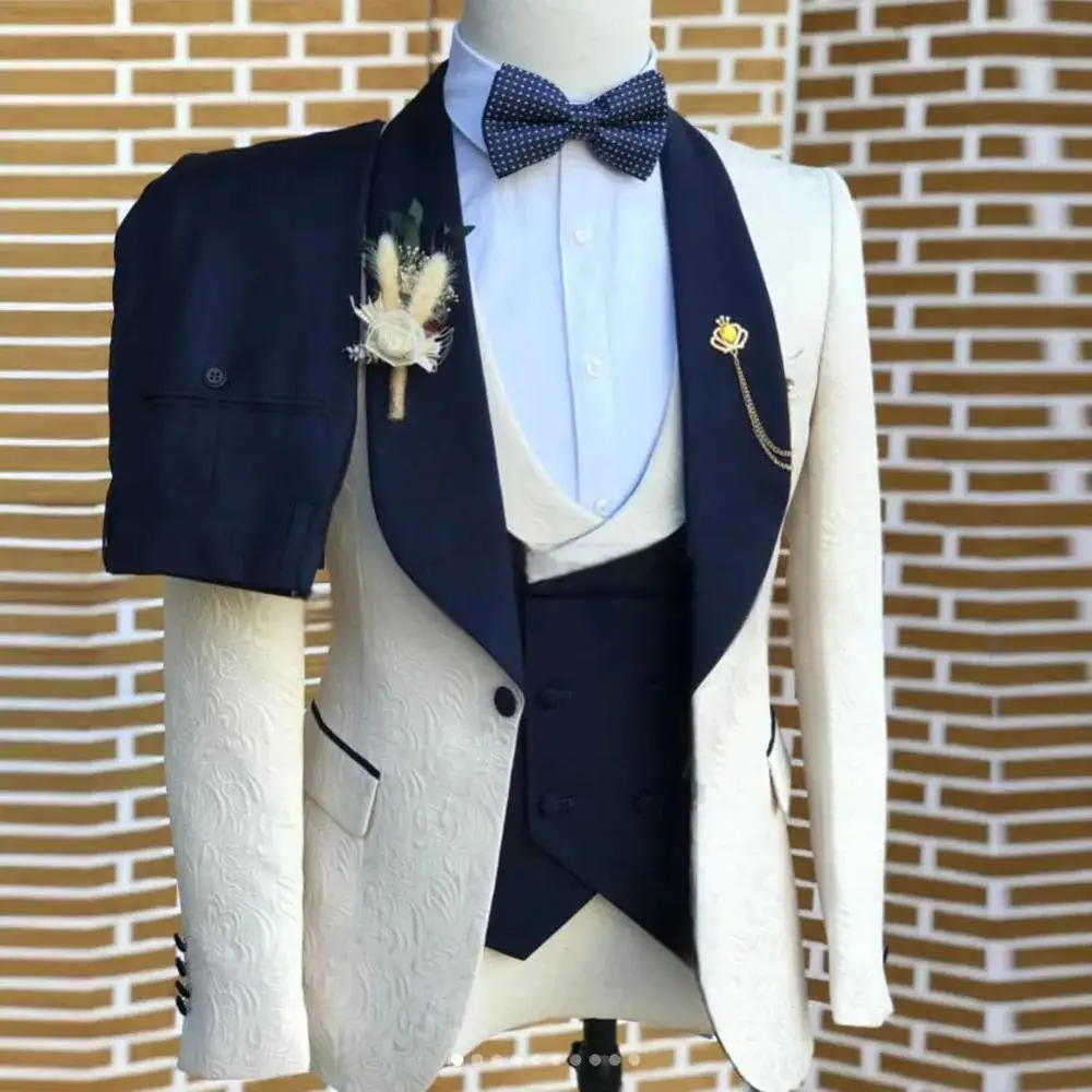 Elegant Ivory Jacquard Suits Men For Wedding Formal Jacket Vest Pants 3 Pieces Groomsman Tuxedos Tailored Male Fashion Clothing