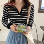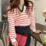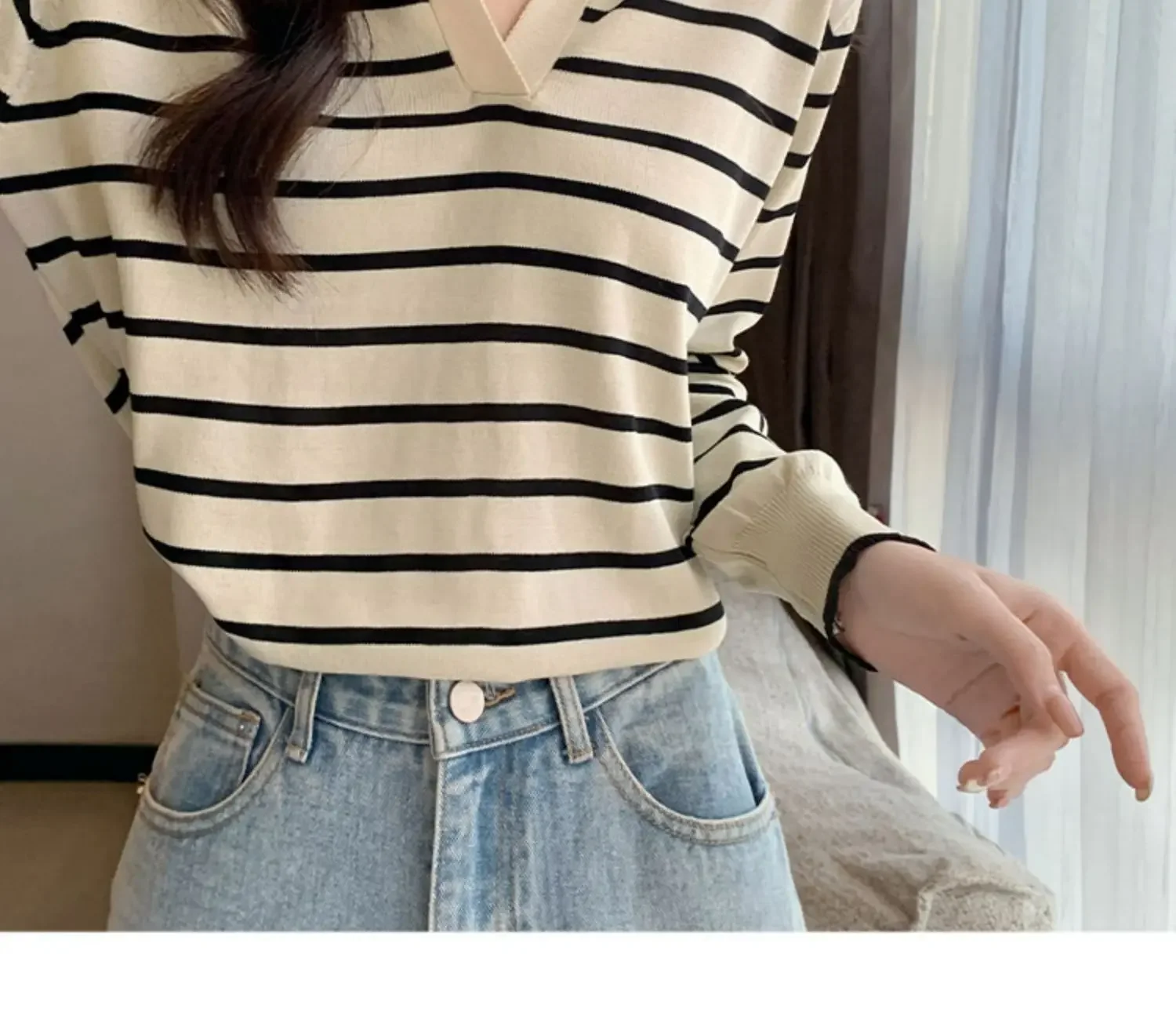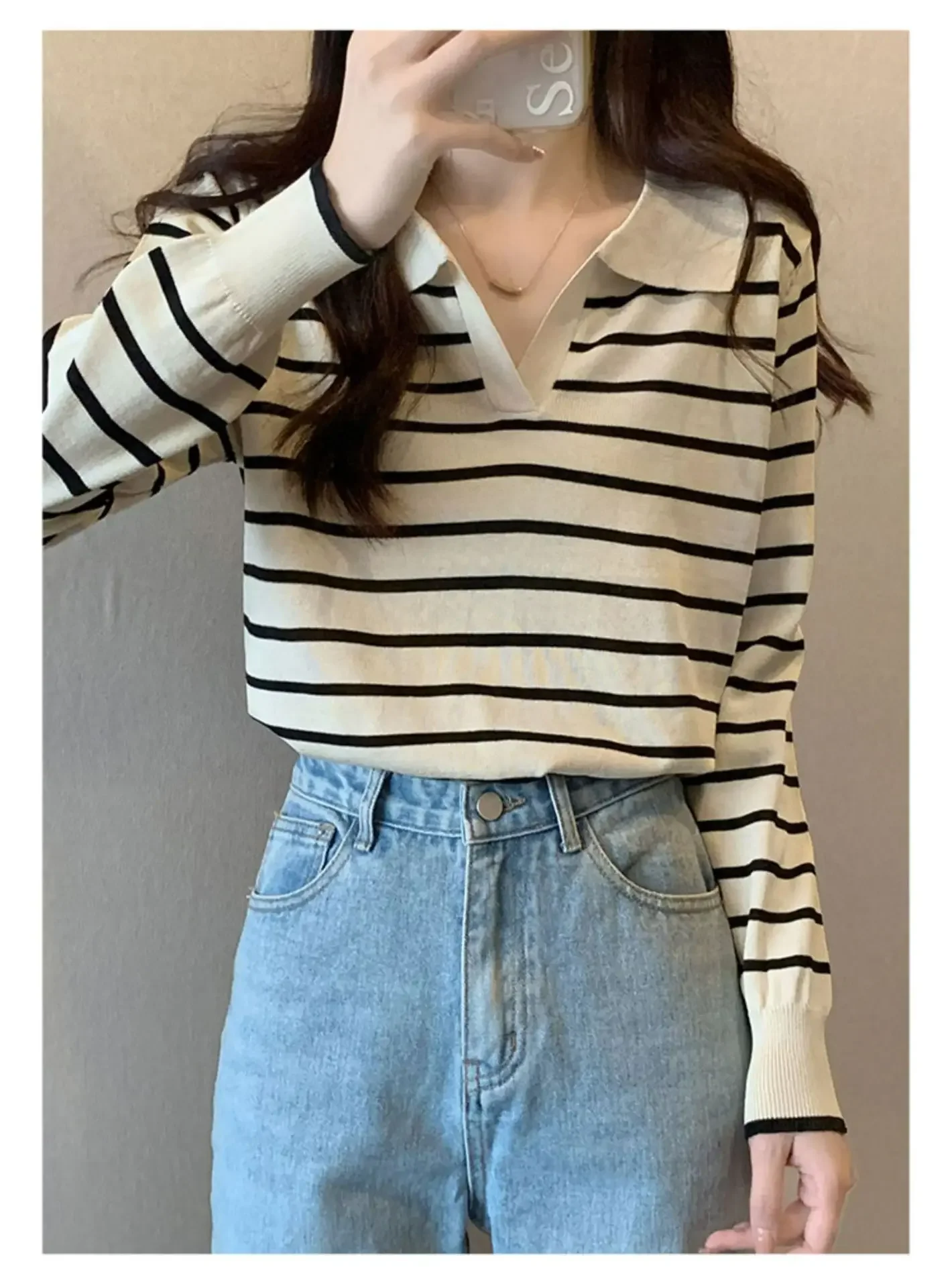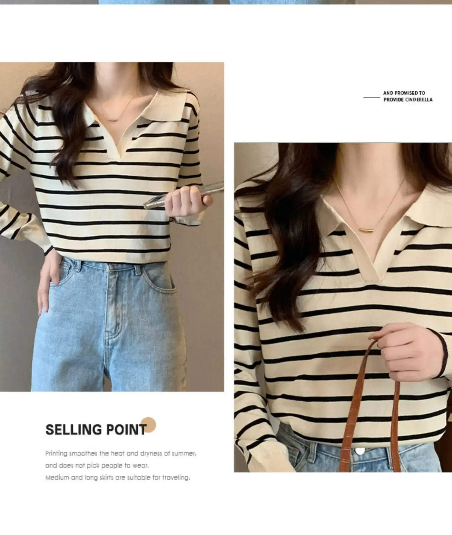 Fashion Striped T-shirt Casual Pullover Knitwear Women Spring and Autumn Underwear Korea Style Popular Premium Sweater Female
