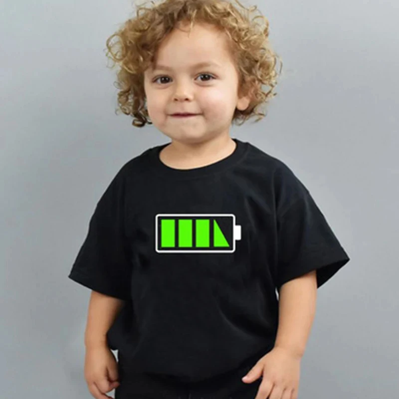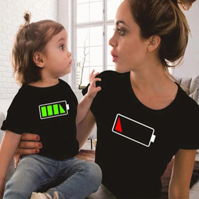Funny Battery Print Family T Shirt Daddy Son Family Matching T-shirts Parent-child Family Clothes Kids Casual Tops Tee