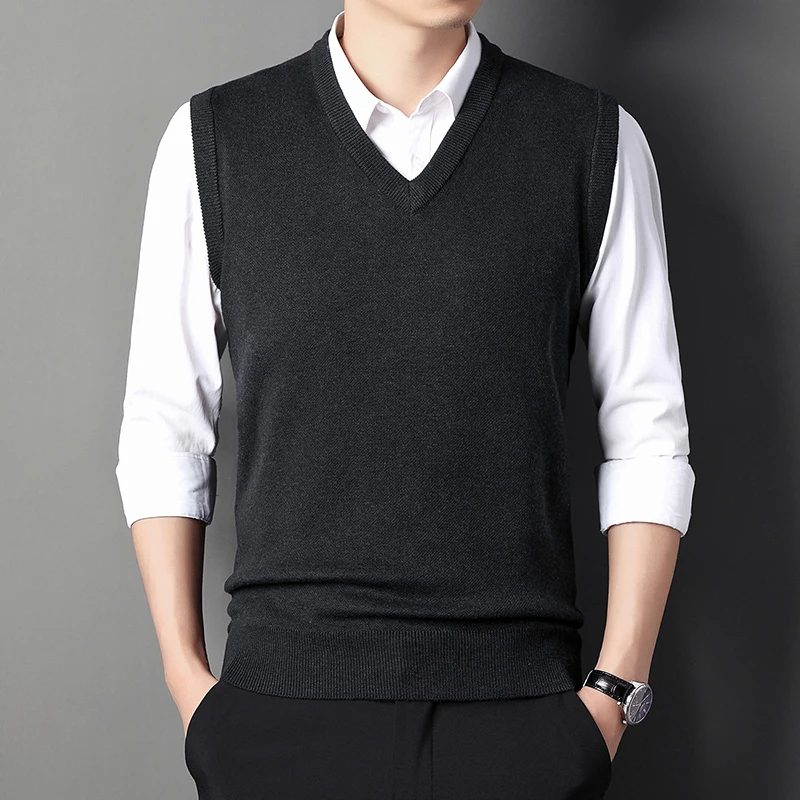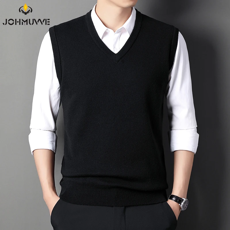 JOHMUVVE New Men V-neck Vest Trend Retro Solid Color Vest All-match Casual Business Work Woolen Knit Vest Men Autumn