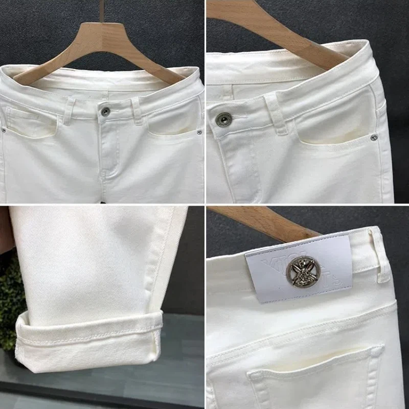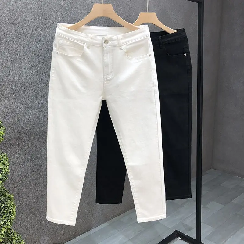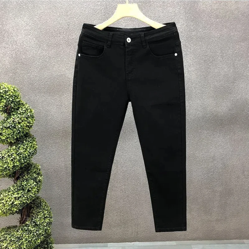 Korean Summer Jeans New Men’s Solid Zipper Fly Pockets Trendy Brand Fashion Straight Elastic Small Foot Slim Ankle Length Pants