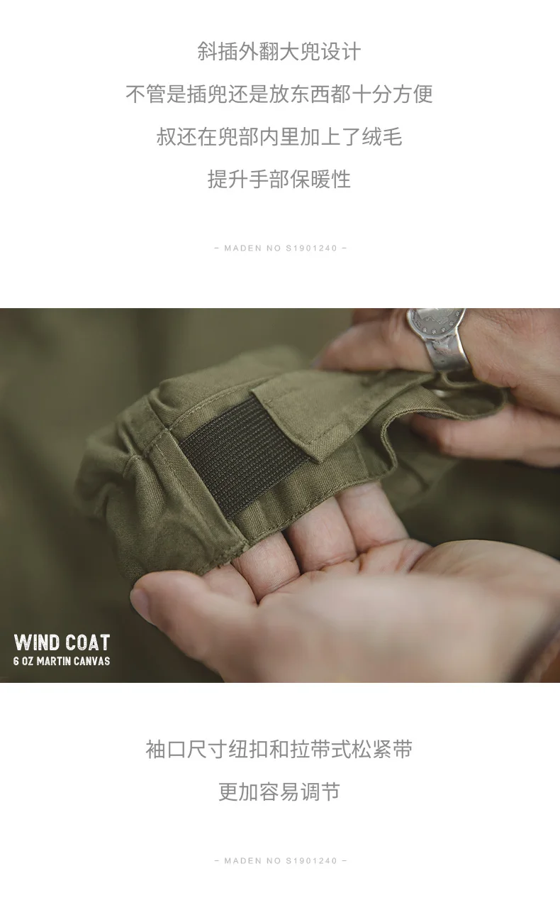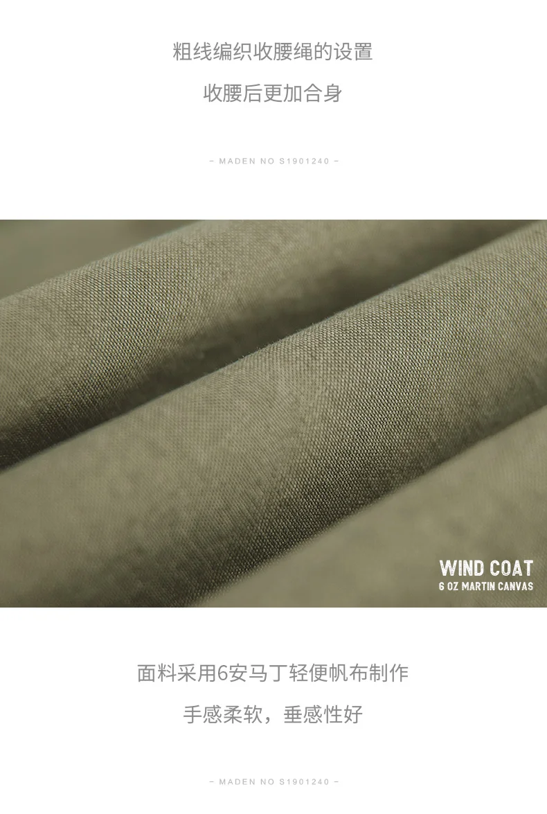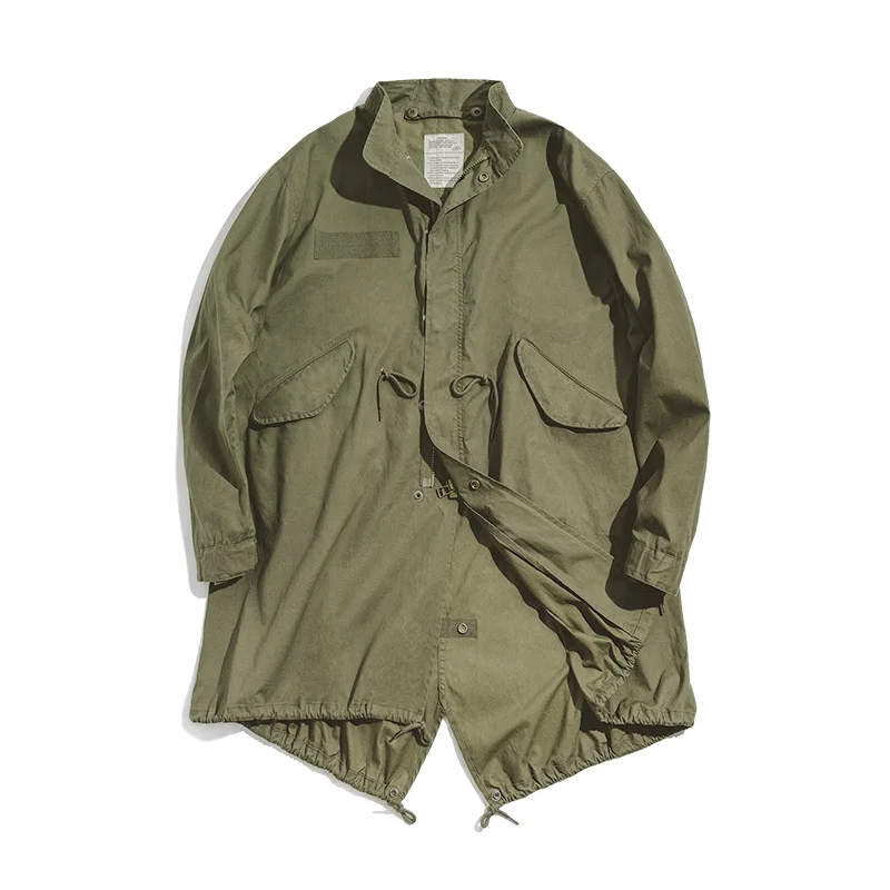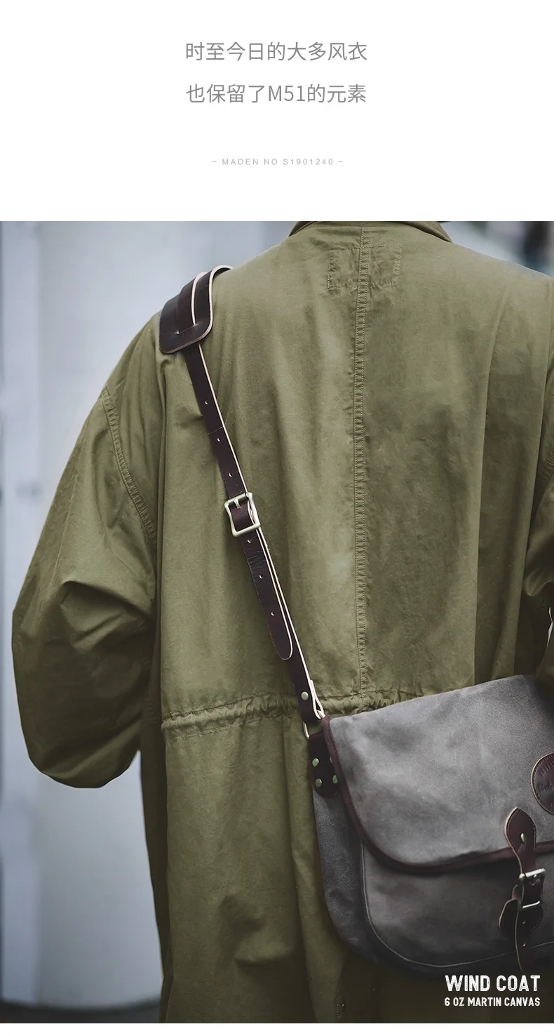 Maden Men’s Vintage M51 Fishtail Green And Camel Trench Coat Woven Waist Rope Mid-length Oversized Loose Coat for Men