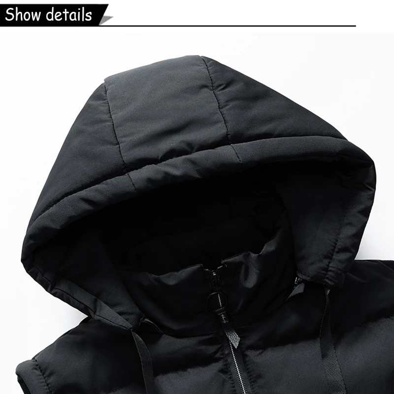 Men Autumn Sleeveless Outdoors Casual Solid Warm Vest Men Winter Detachable Hooded Fleece Pocket Zipper Fashion Vest Male Coat