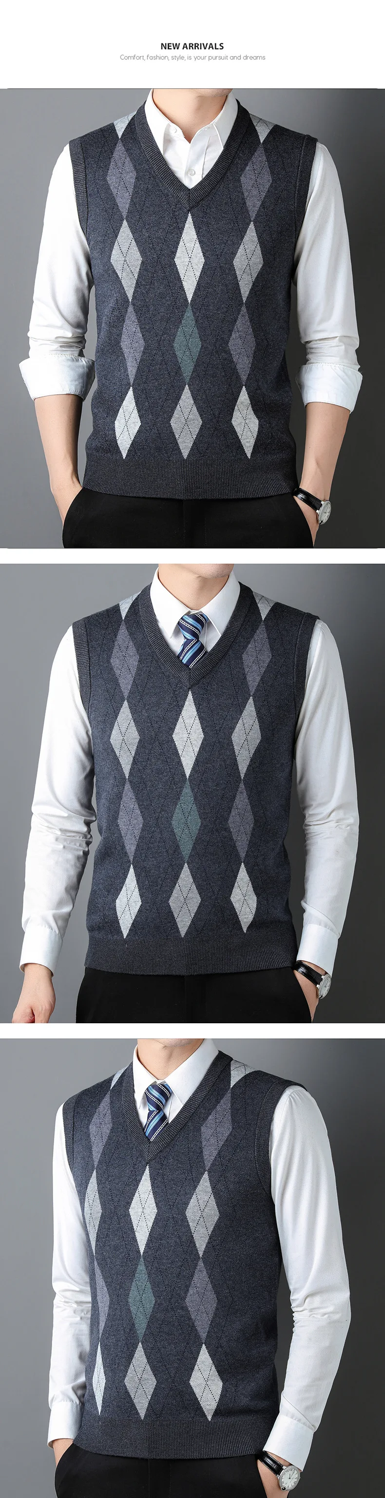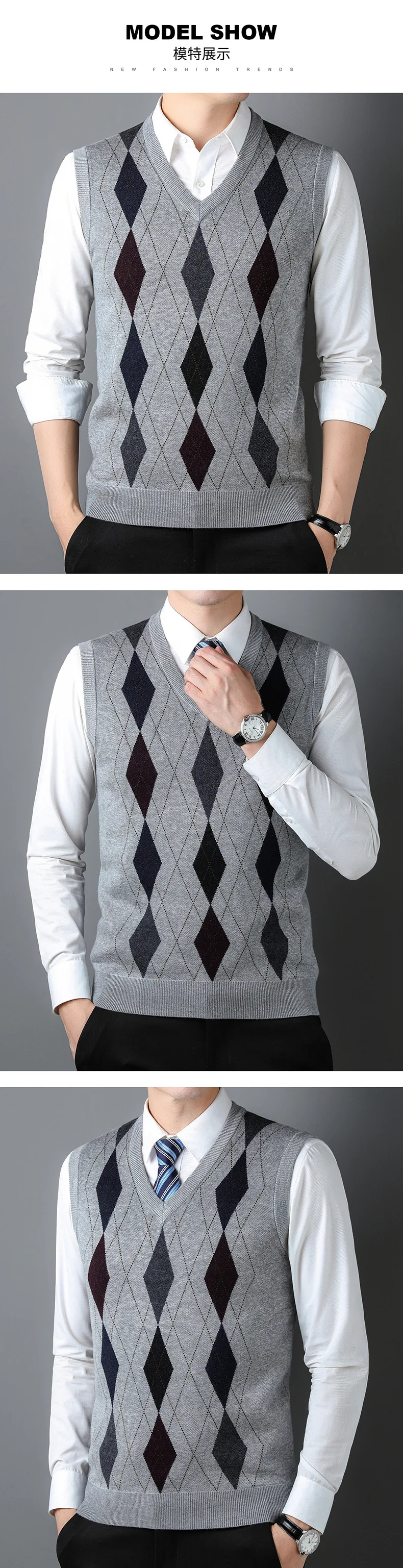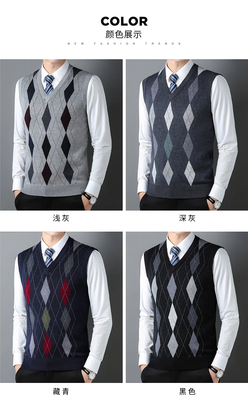 Men’s Autumn and Winter Chicken Collar Knitted Vest Young and Middle-aged Rhomboid Grain Thickened Knitted Warm Vest