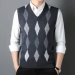 Be the first to review “Men’s Autumn and Winter Chicken Collar Knitted Vest Young and Middle-aged Rhomboid Grain Thickened Knitted Warm Vest” Cancel reply