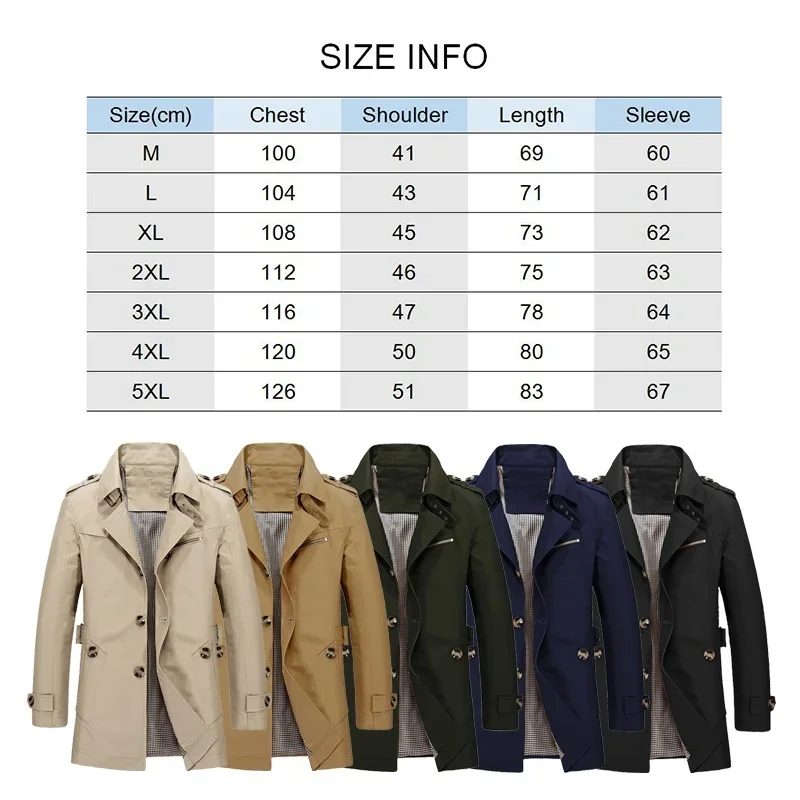 Be the first to review “Mens Business Long Trench 2024 Casual Single Breasted Windbreaker Fashion Autumn Lapel Jackets Male New Slim Overcoats Outwear” Cancel reply