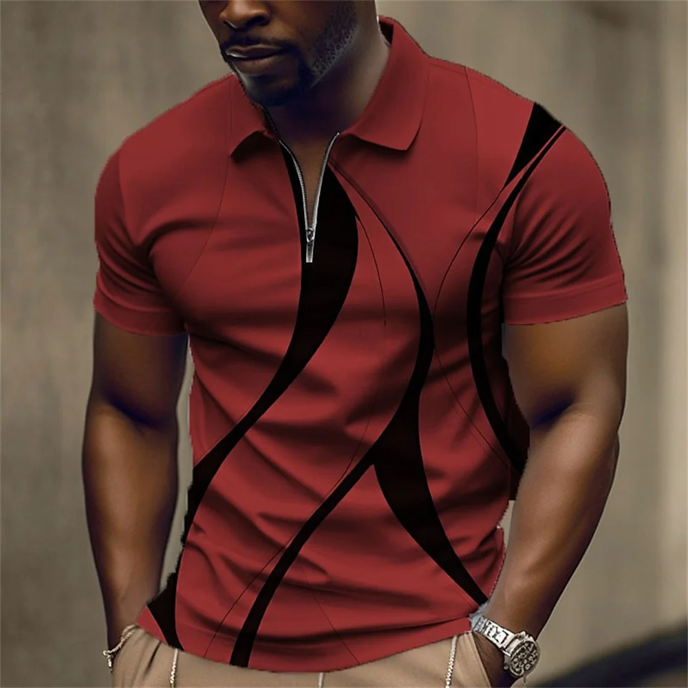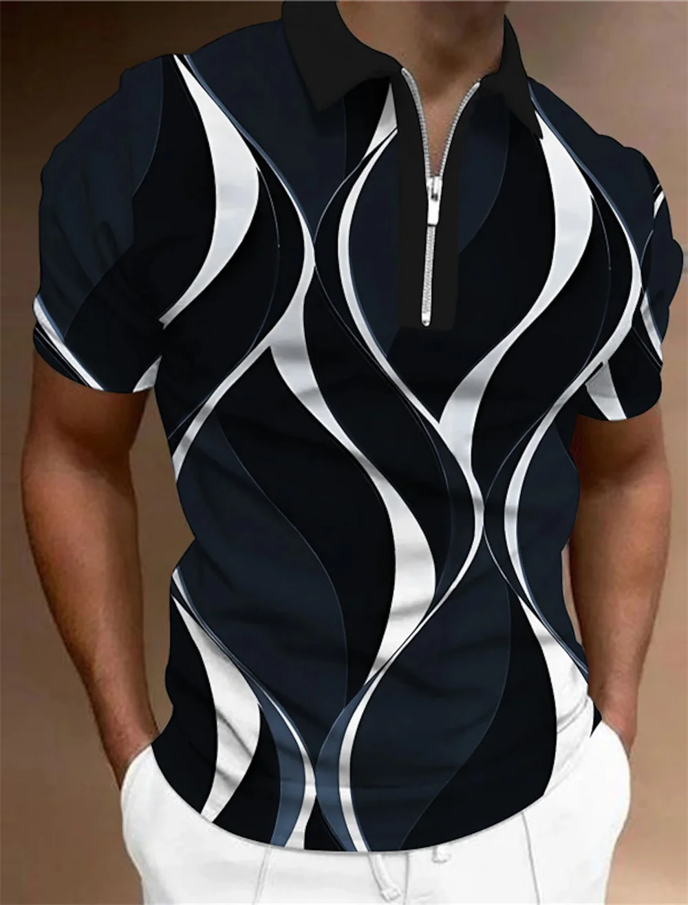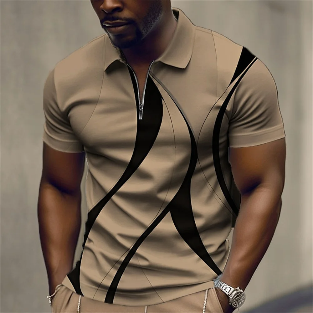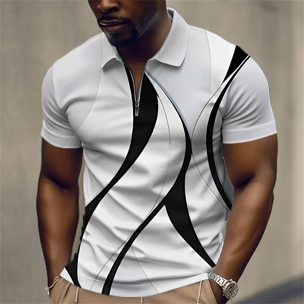 Men’S Zip Polo Lapel Polo Shirt Golf Shirts Graphic Prints Geometry Linear Turndown Short Sleeves Zipper Clothing Tops Designer