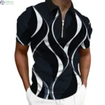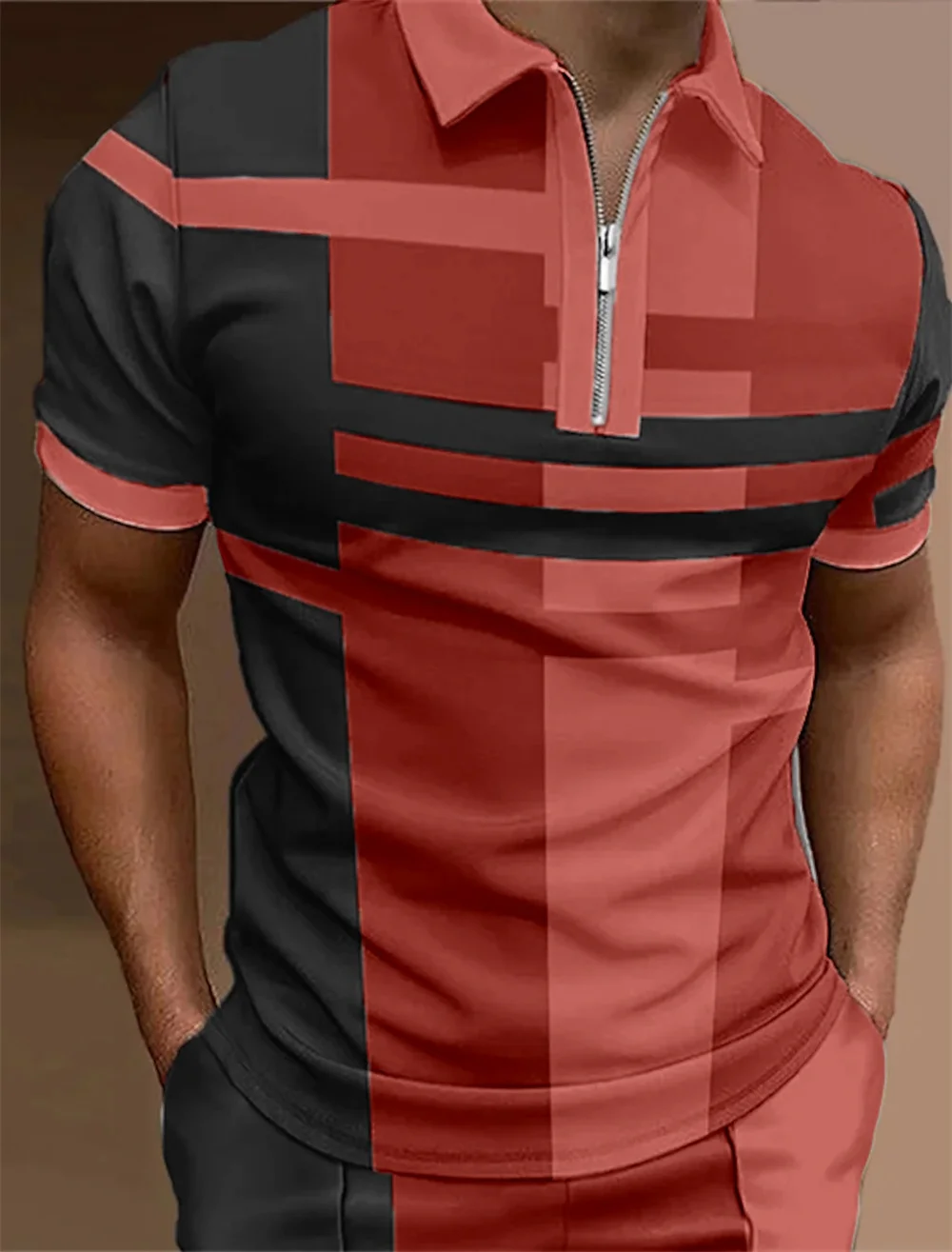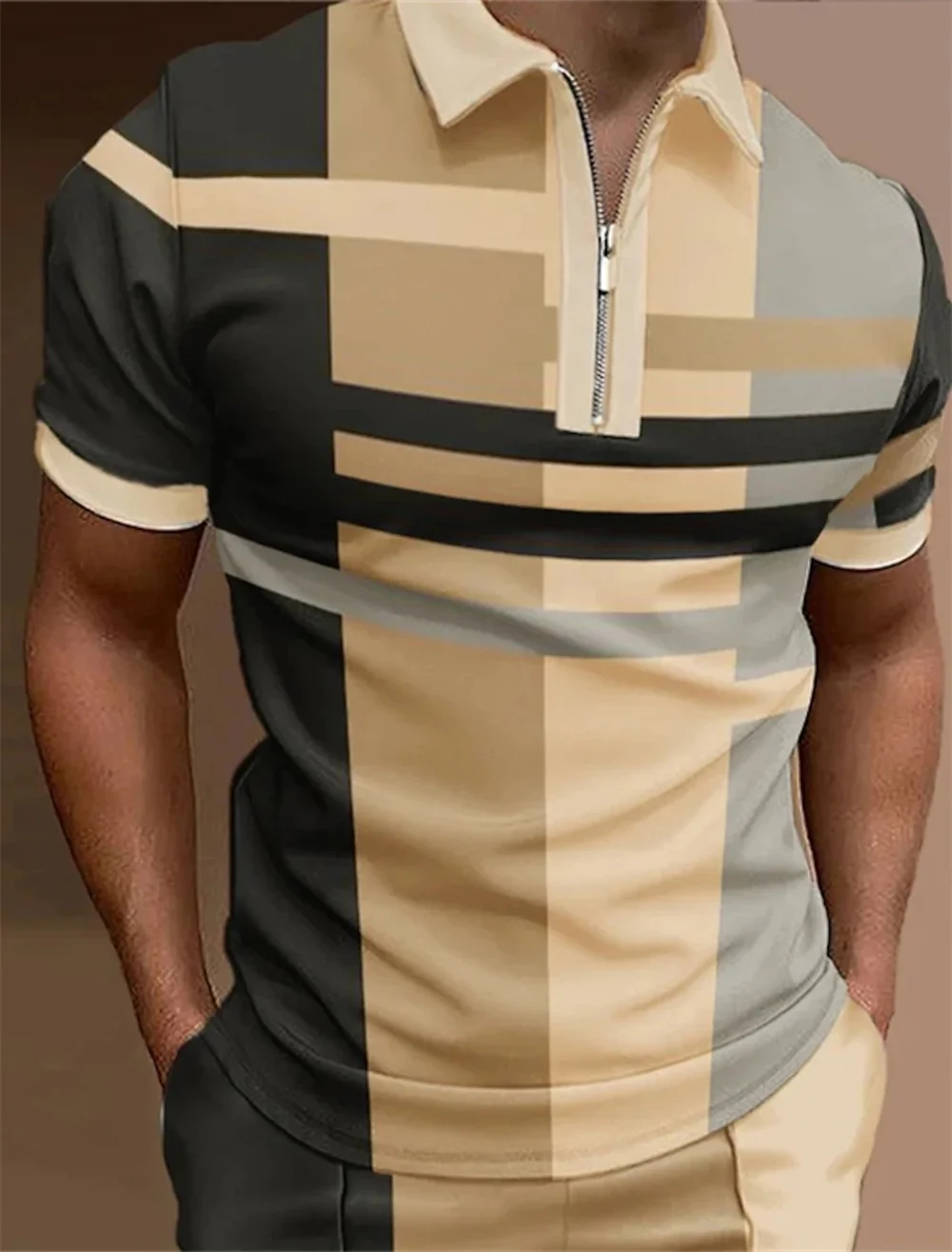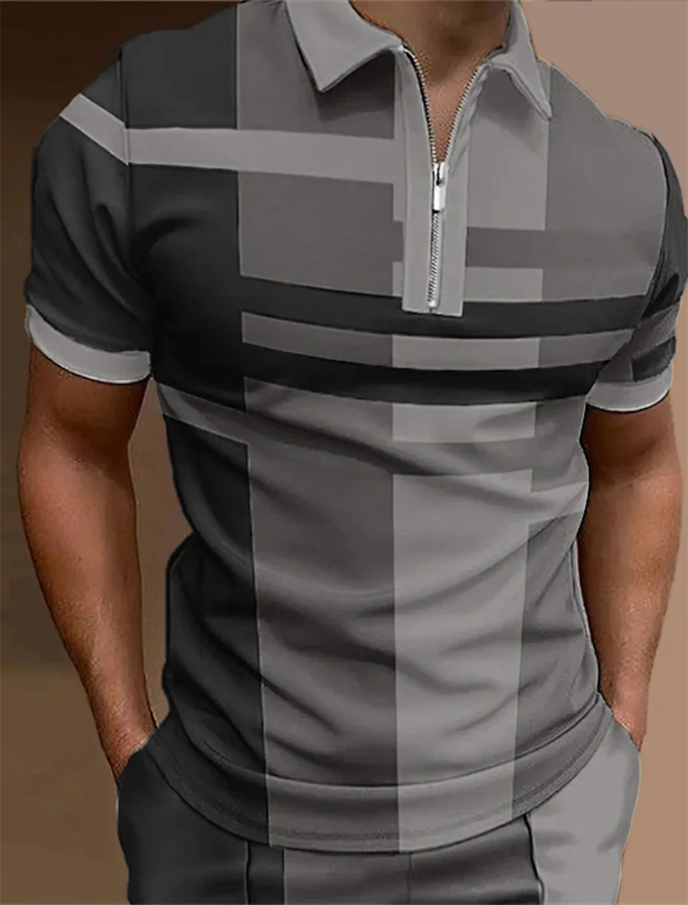 Men’S Zip Polo Lapel Polo Shirt Golf Shirts Graphic Prints Geometry Linear Turndown Short Sleeves Zipper Clothing Tops Designer