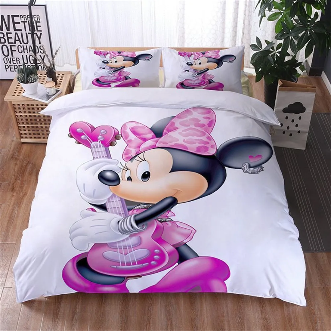 Minnie Mickey Mouse Bedding Set Boys Girls 3D Printed Duvet Cover Sets Kids,Hidden Zipper,Bed Cover,with Pillowcase Quilt Cover