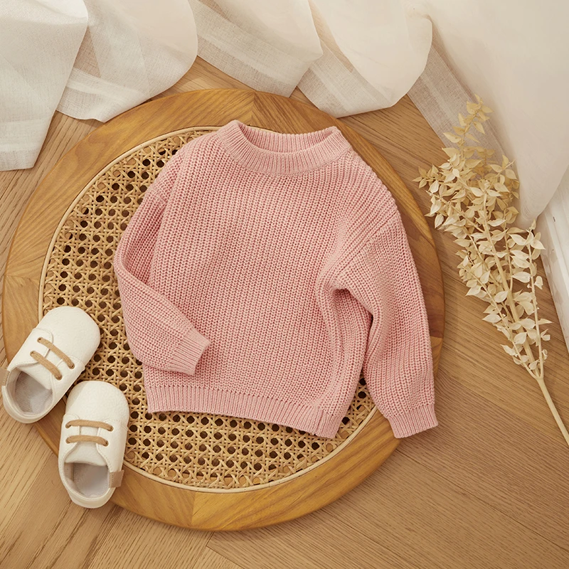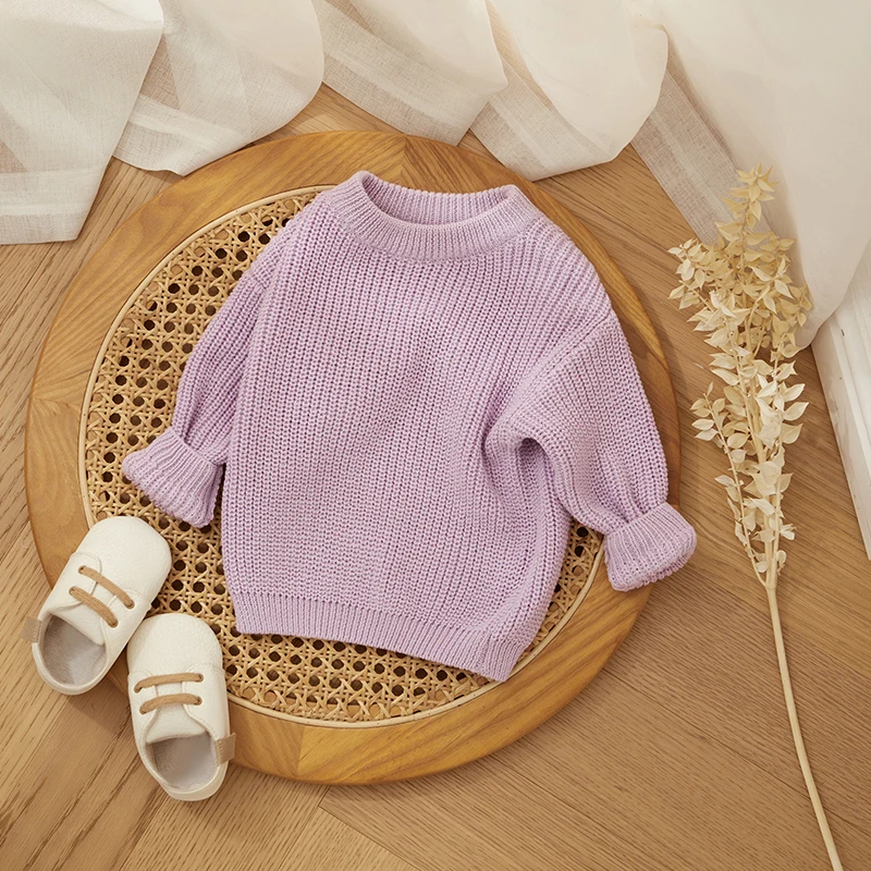 MISOWMNJOY Children Boy Girl Knit Sweater for Winter Kids Clothes Causal Solid Color Long Sleeve Pullover Tops Toddler Jumpers