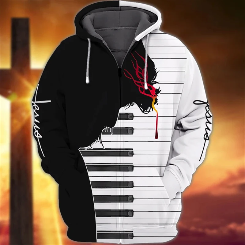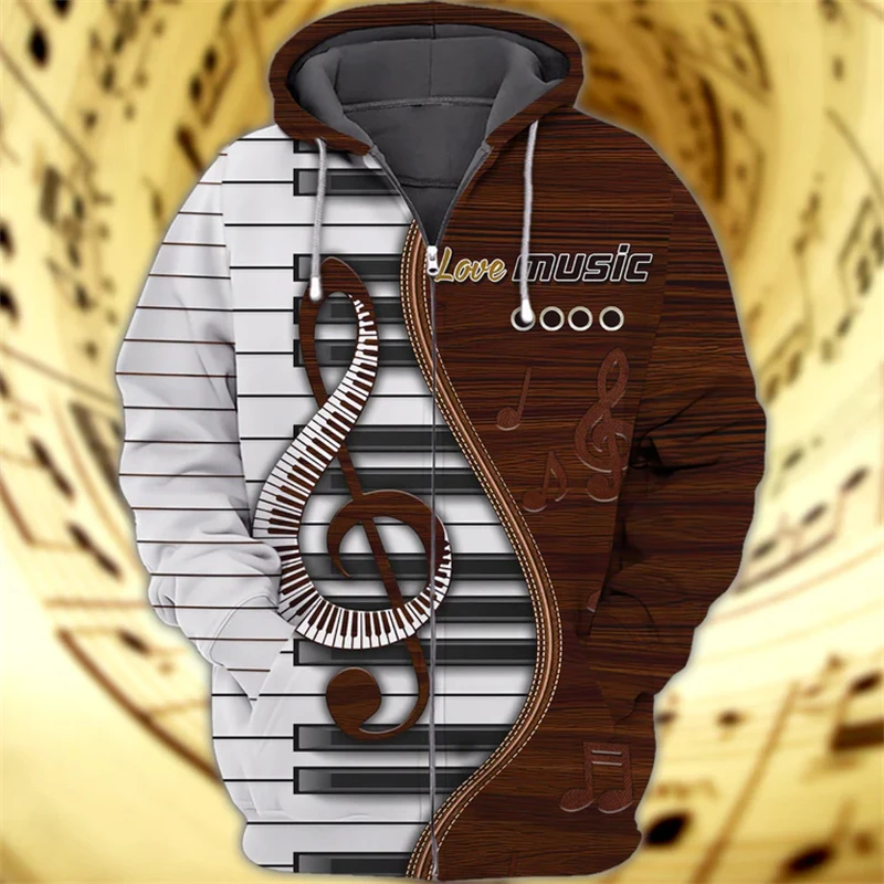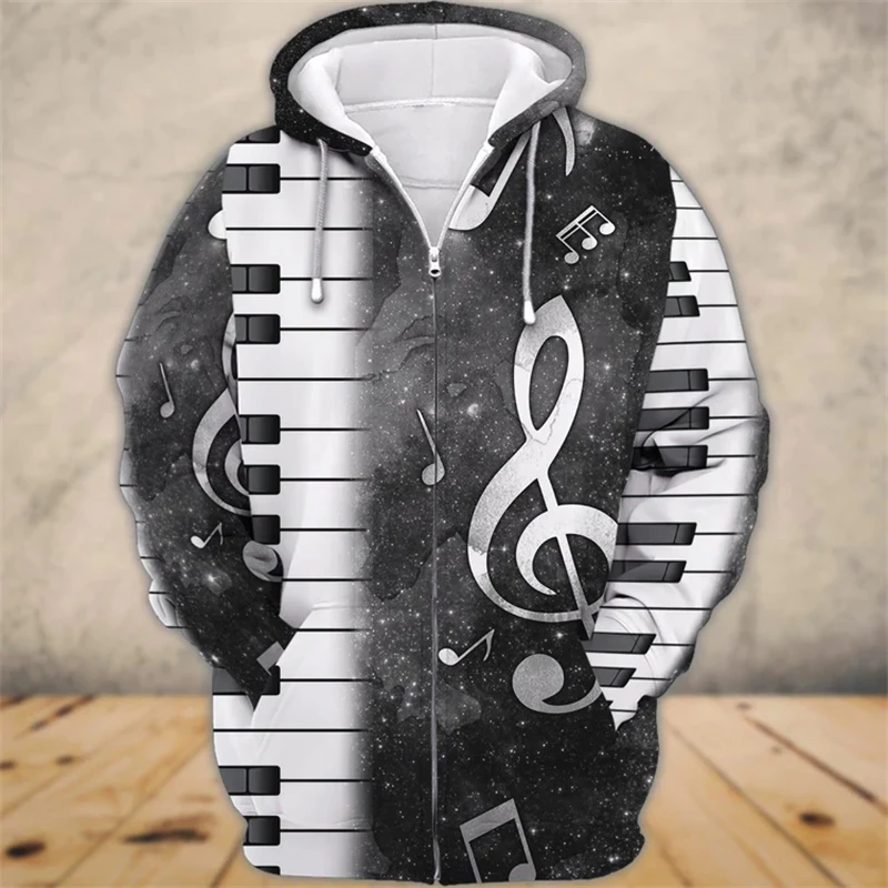 New Hoodies Sweatshirt Men’s Zip Hoodie 3D Piano Print Pullovers Oversized Tops Male Autumn Long Sleeve Loose Retro Clothes Hot