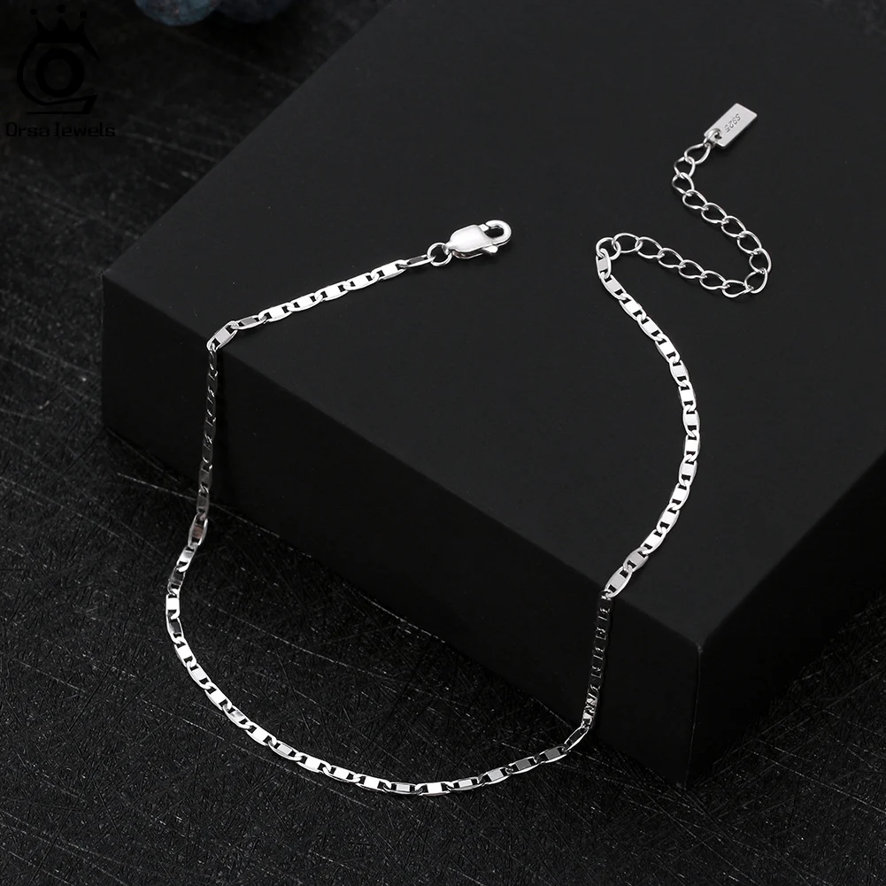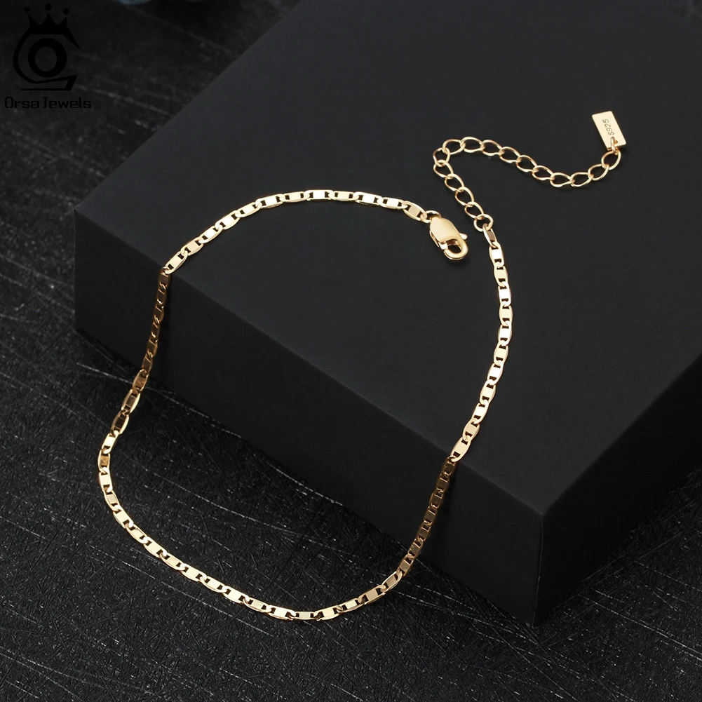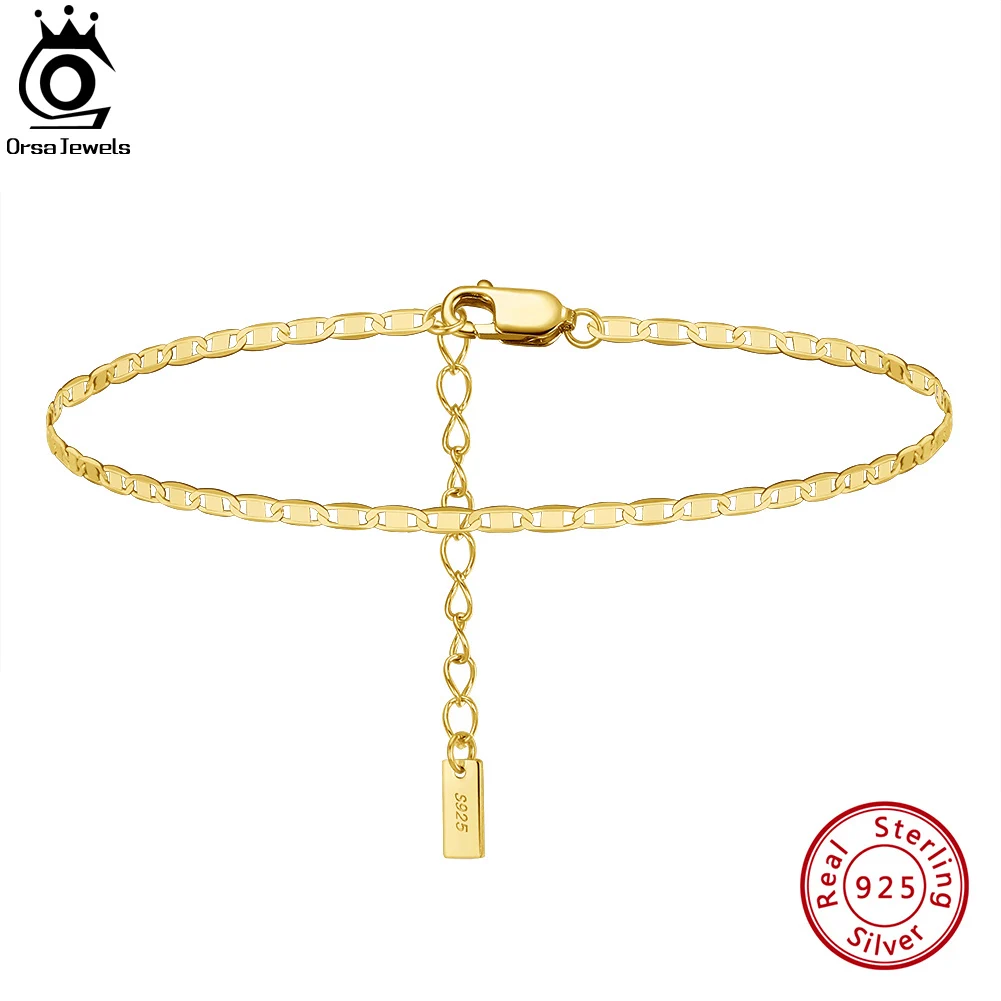 ORSA JEWELS 925 Sterling Silver Italian 2mm Sparkle Mirror Chain Anklets for Women Gold Foot Bracelet Ankle Straps Jewelry SA29