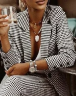 Plaid Print Lapel Collar Blazer & Pants Set Women 2pcs Clothes Suit Pants Suits Spring Autumn Fashion Casual