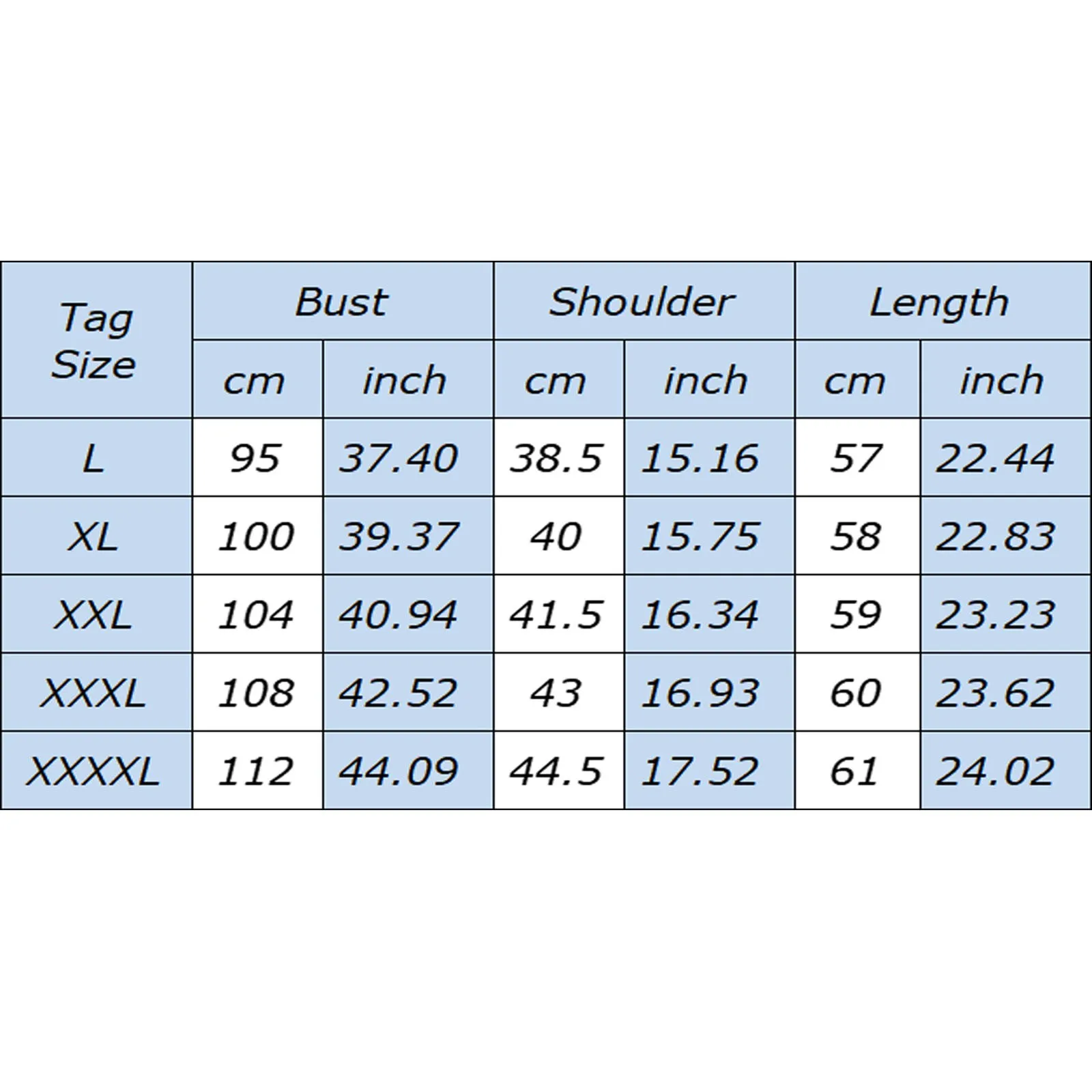 | Size:XXXXL | bust:112cm/44.09” | Shoulder:44.5cm/17.52” | Length:61cm/24.02” |