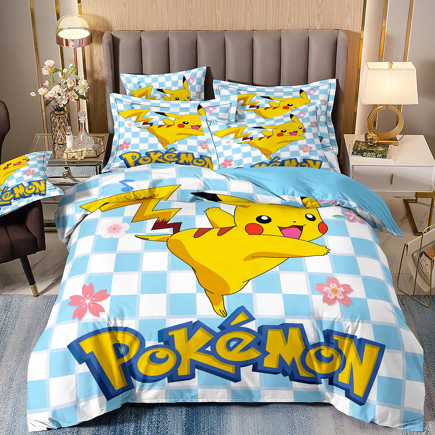Pokemon Bedding Sets for Children’s Set Room Decoration,Japanese Anime Pikachu Quilt Cover,Multiple sizes With pillowcase
