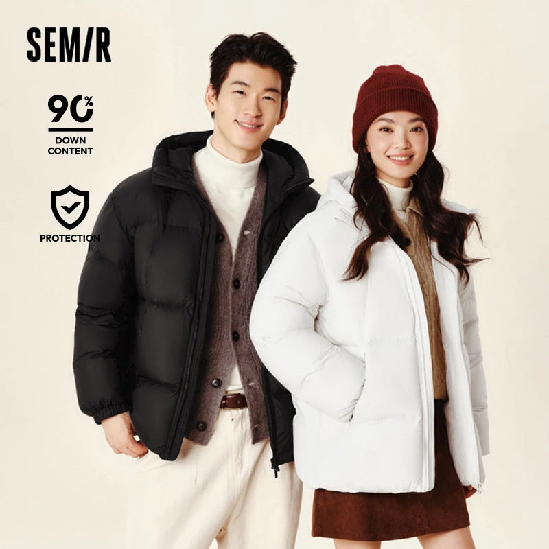 Semir Down Jacket Men 2024 Winter New Thermal Three-Proof Couple Hooded Outerwear Solid Color Versatile Down Jacket