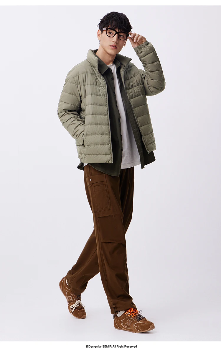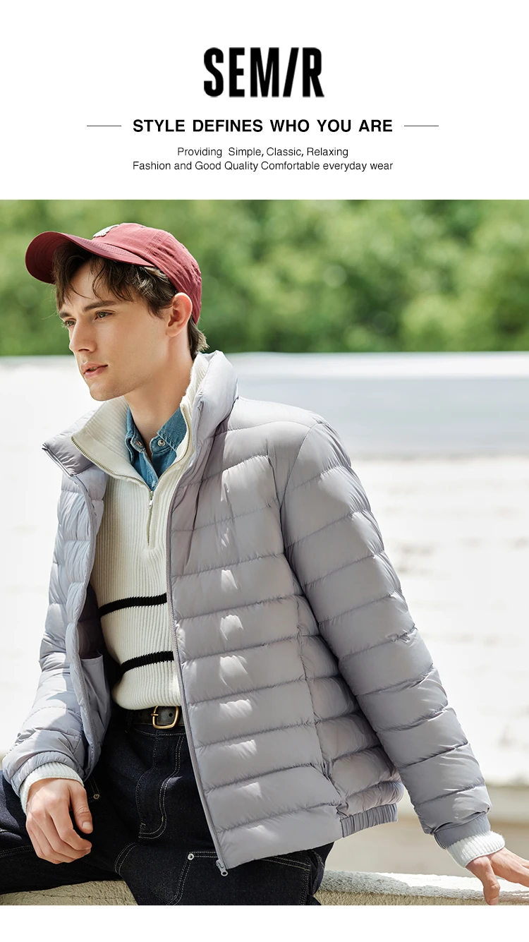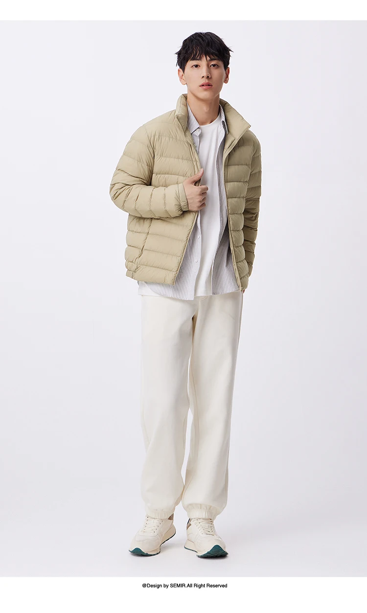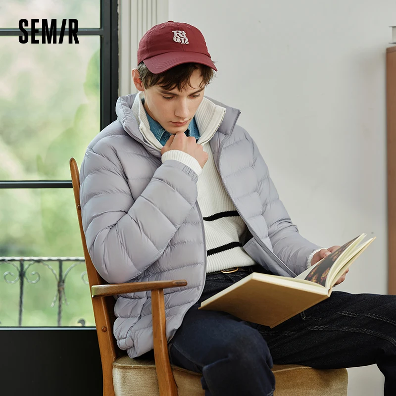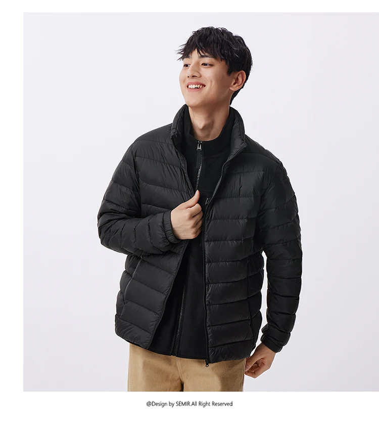 Semir Down Jacket Men Three-Proof Lightweight Short Jacket New Winter 2024 Warm Solid Color Versatile Collar Top
