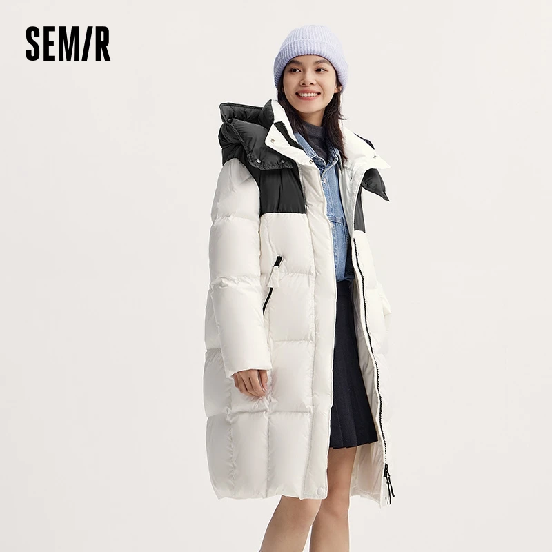 Semir Down Jacket Women Long Length Water-Repellent 2024 New Winter Detachable Hood Winter Clothing