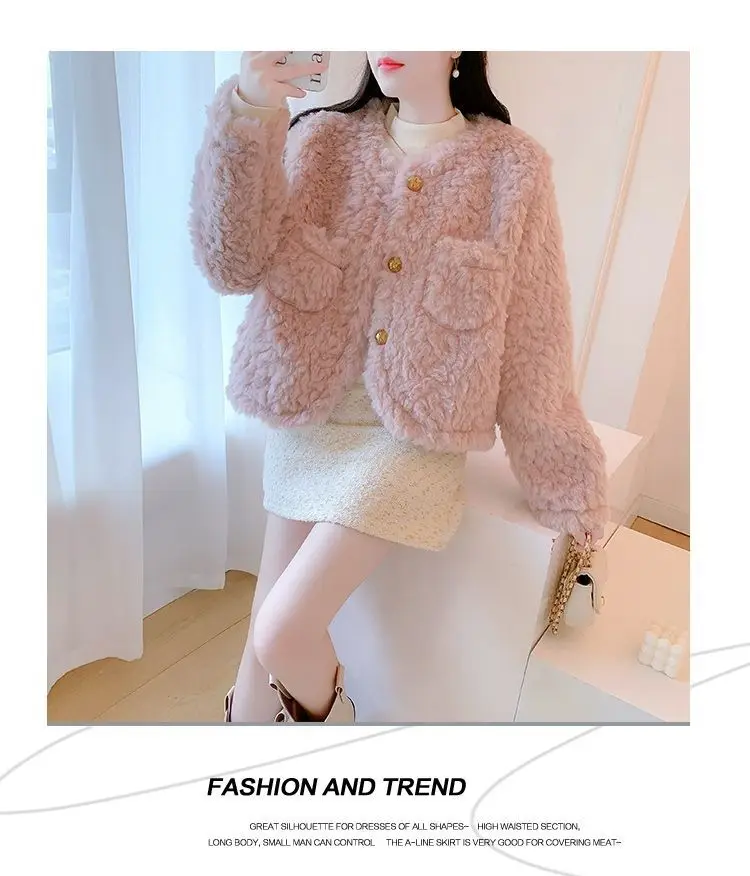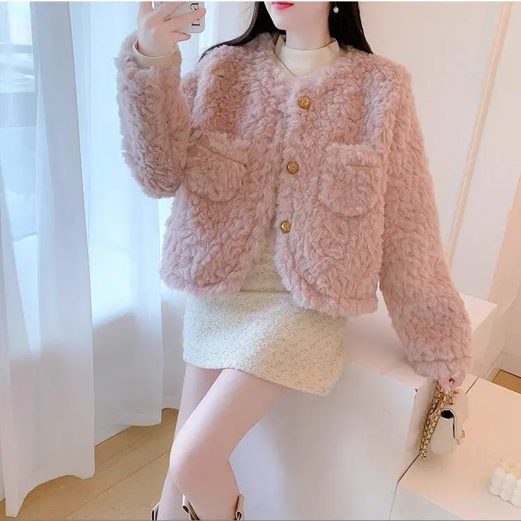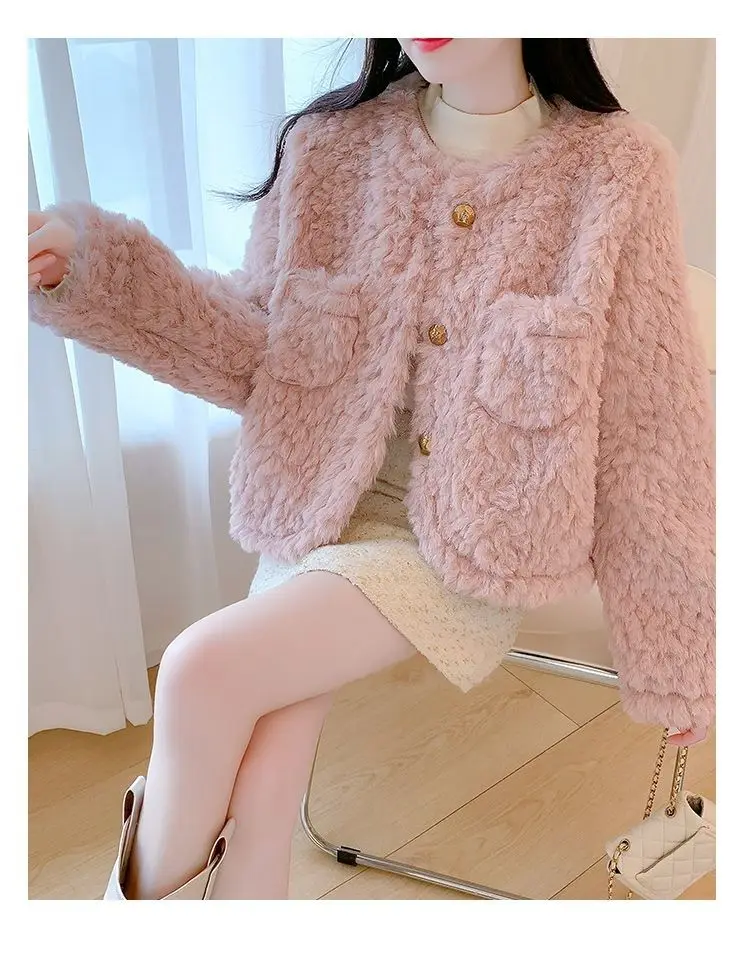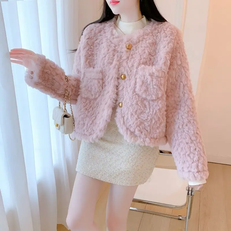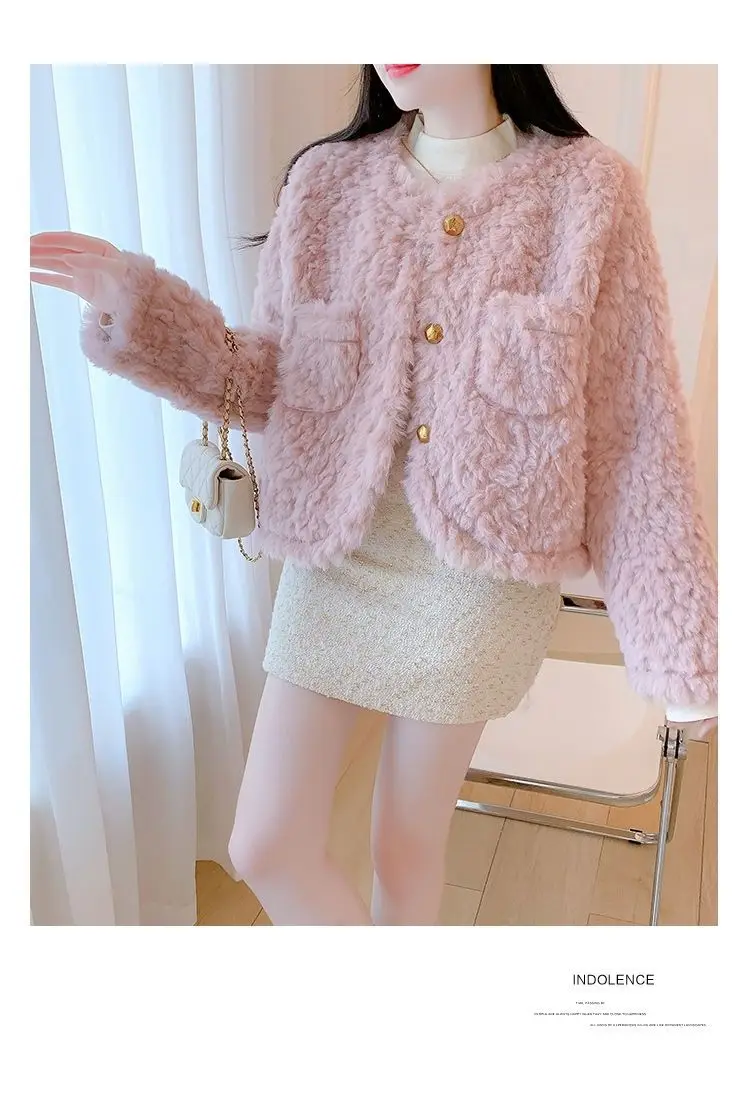 Small Pink Lamb Fur Coat for Women Short Style Autumn and Winter Temperament New Gentle Style Thickened and Leather Integrated