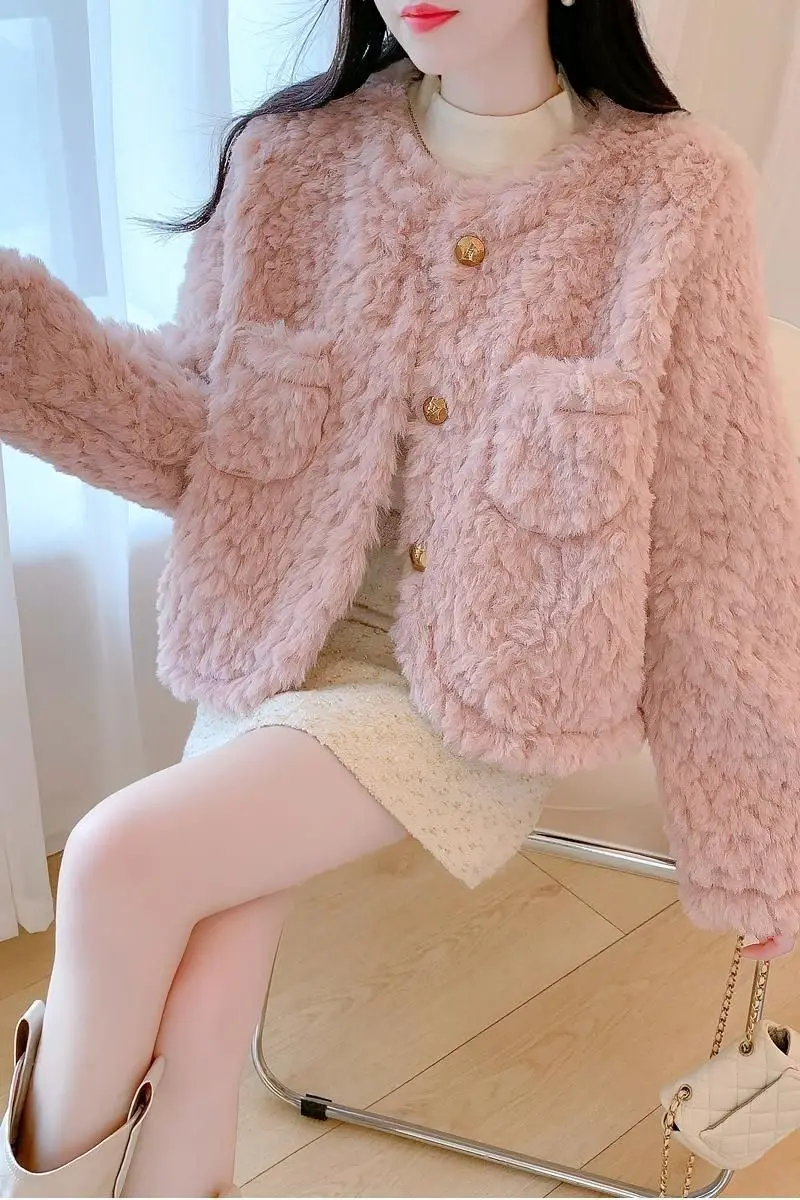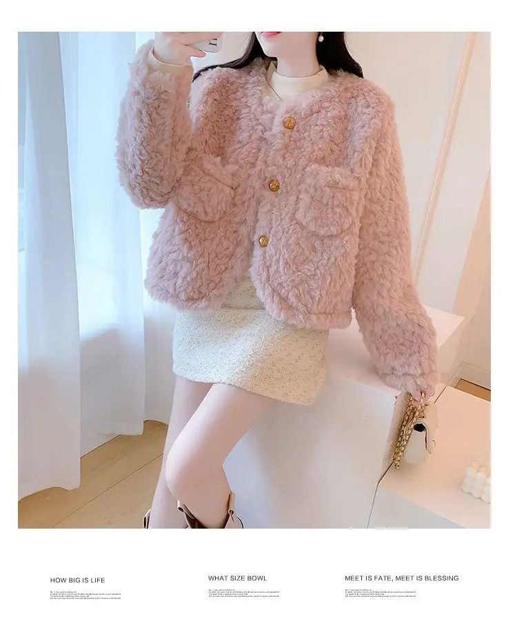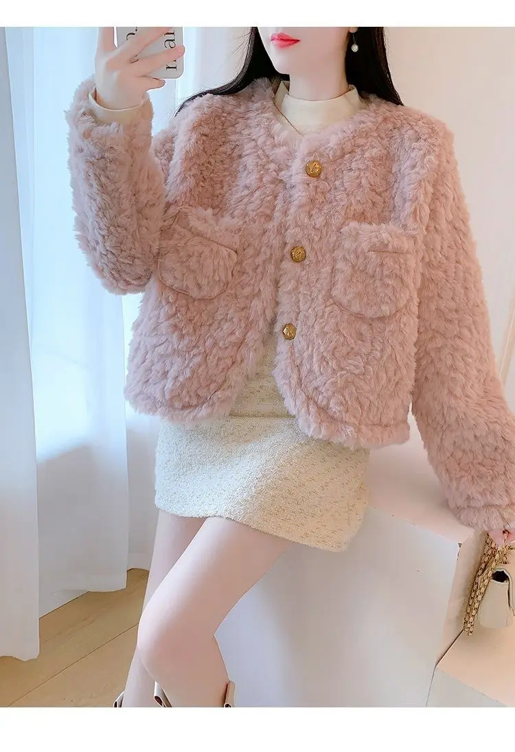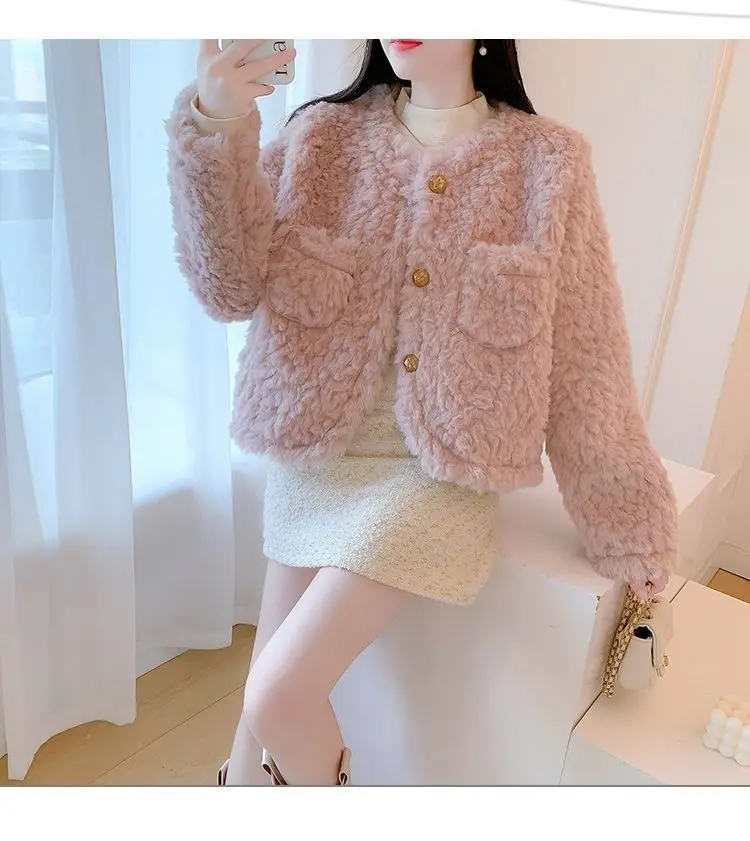 Small Pink Lamb Fur Coat for Women Short Style Autumn and Winter Temperament New Gentle Style Thickened and Leather Integrated