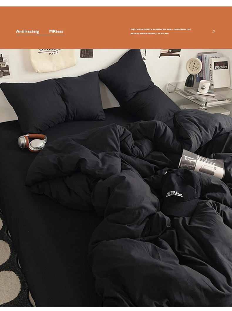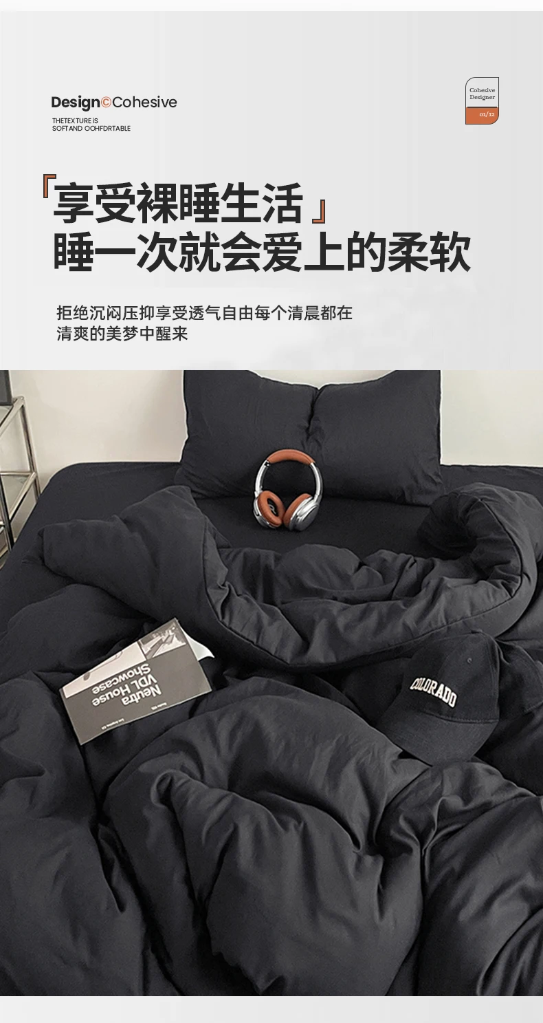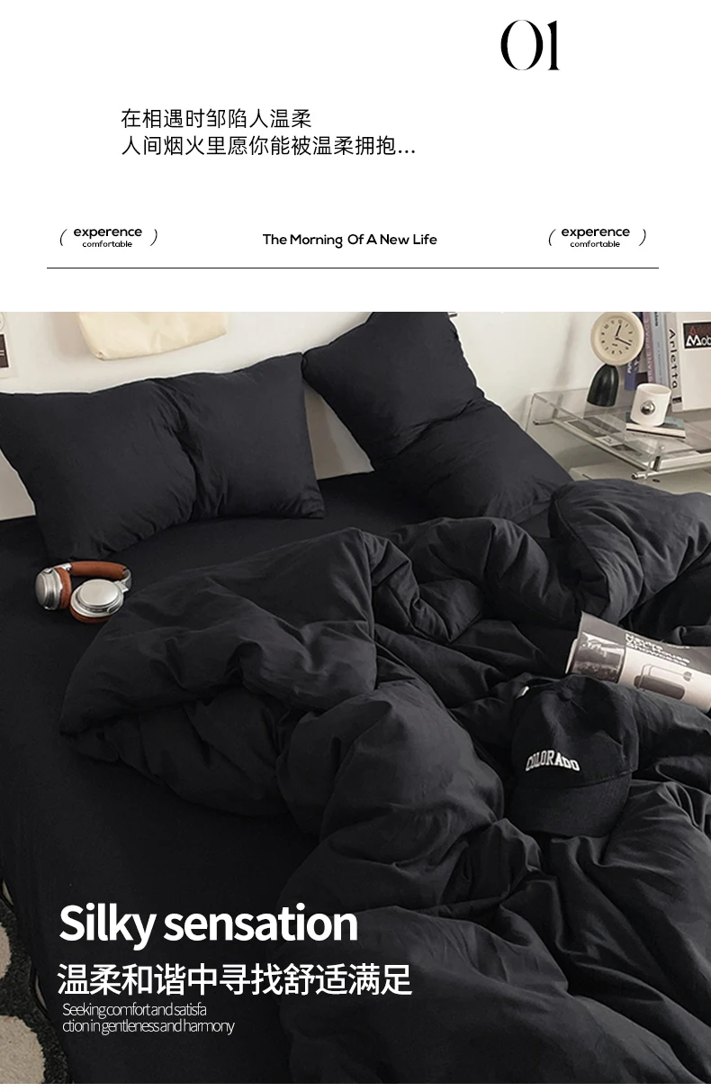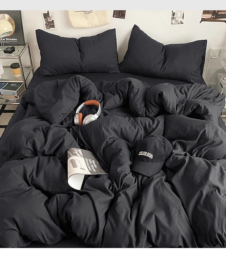 Solid Color Bedding Set Skin Friendly Fabric Duvet Cover Bedsheet Pillowcase Single Double King Queen Size Quilt Cover