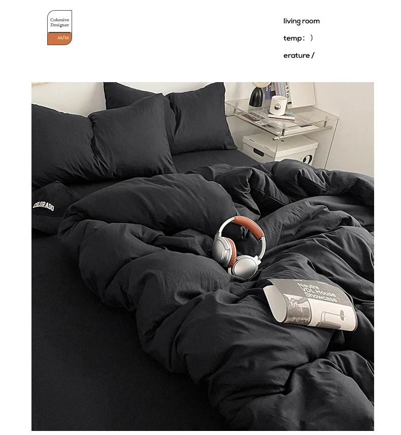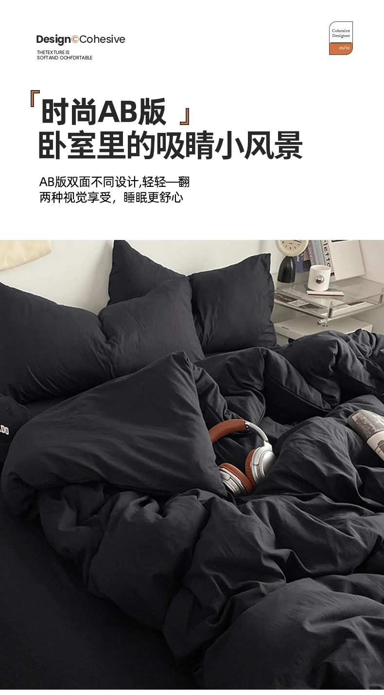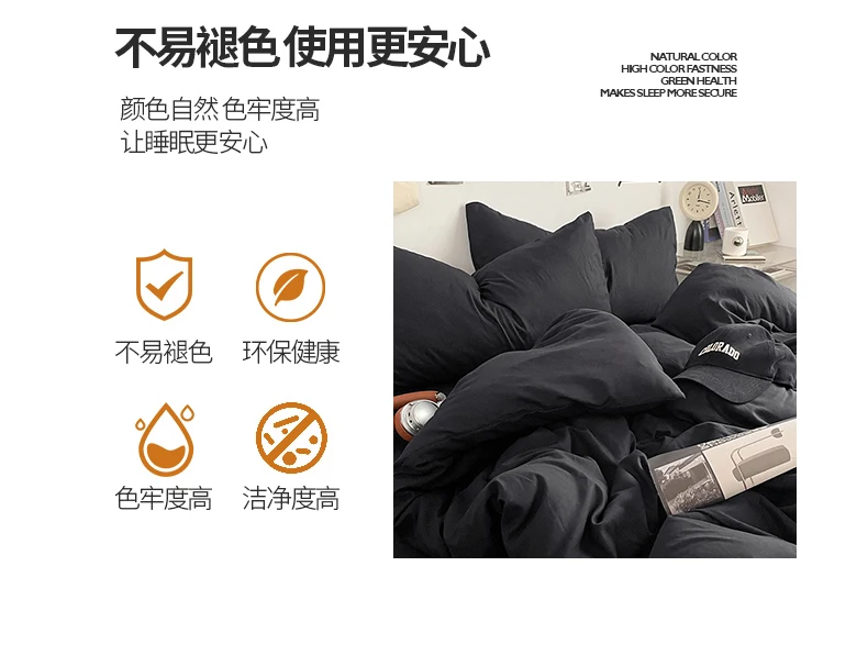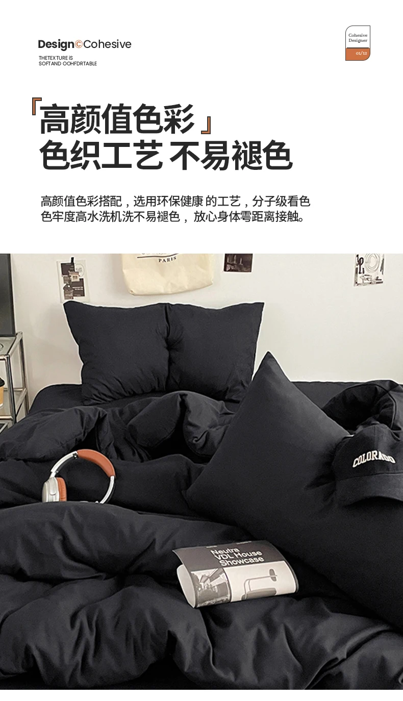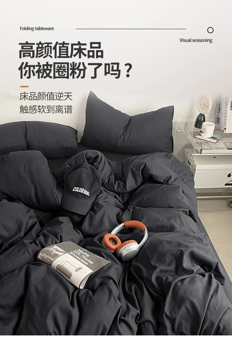 Solid Color Bedding Set Skin Friendly Fabric Duvet Cover Bedsheet Pillowcase Single Double King Queen Size Quilt Cover
