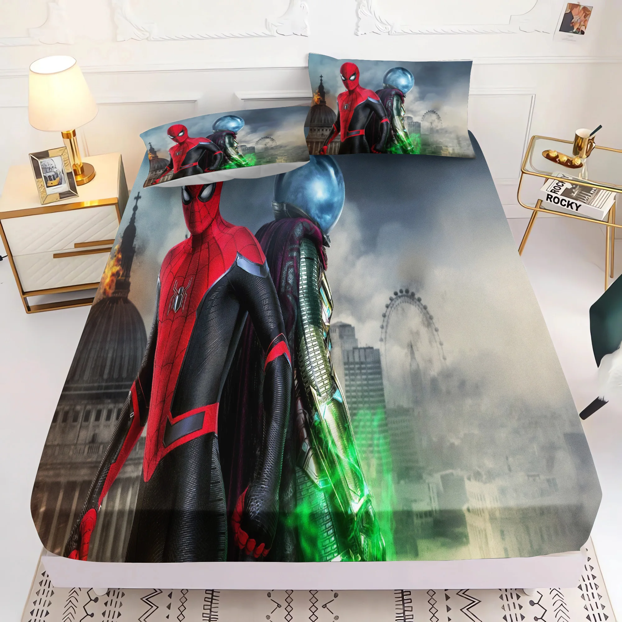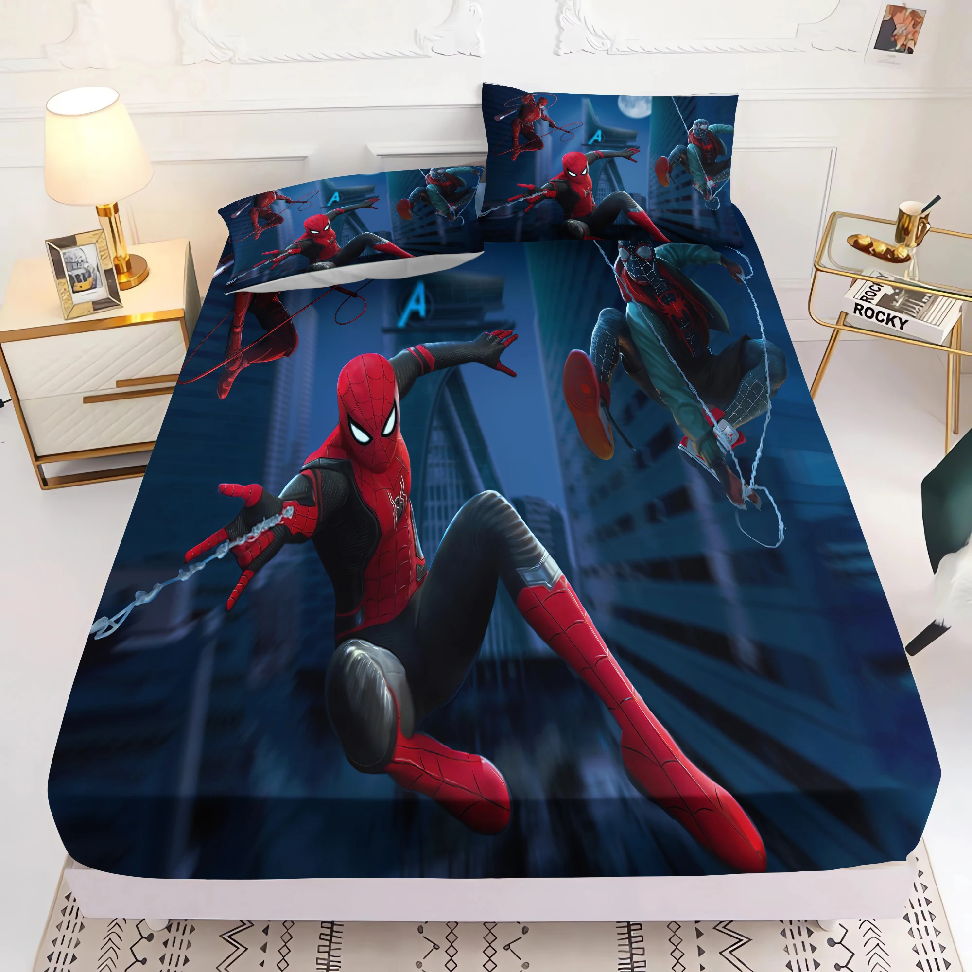 Spiderman 3D Children’S Bedding Set Fitted Sheet 100% Polyester With Pillowcase Suitable For Children And Adults Anime Printed