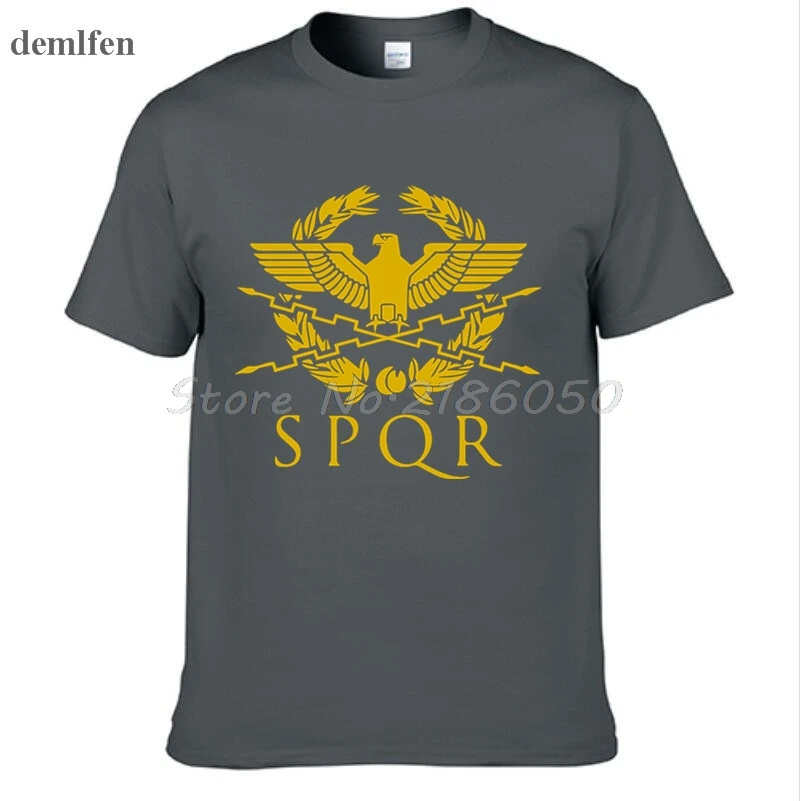 SPQR Roman Gladiator Imperial Golden Eagle T-Shirt Mens Casual Short O-Neck T shirt Harajuku Tops Tees Shirt Plus Size