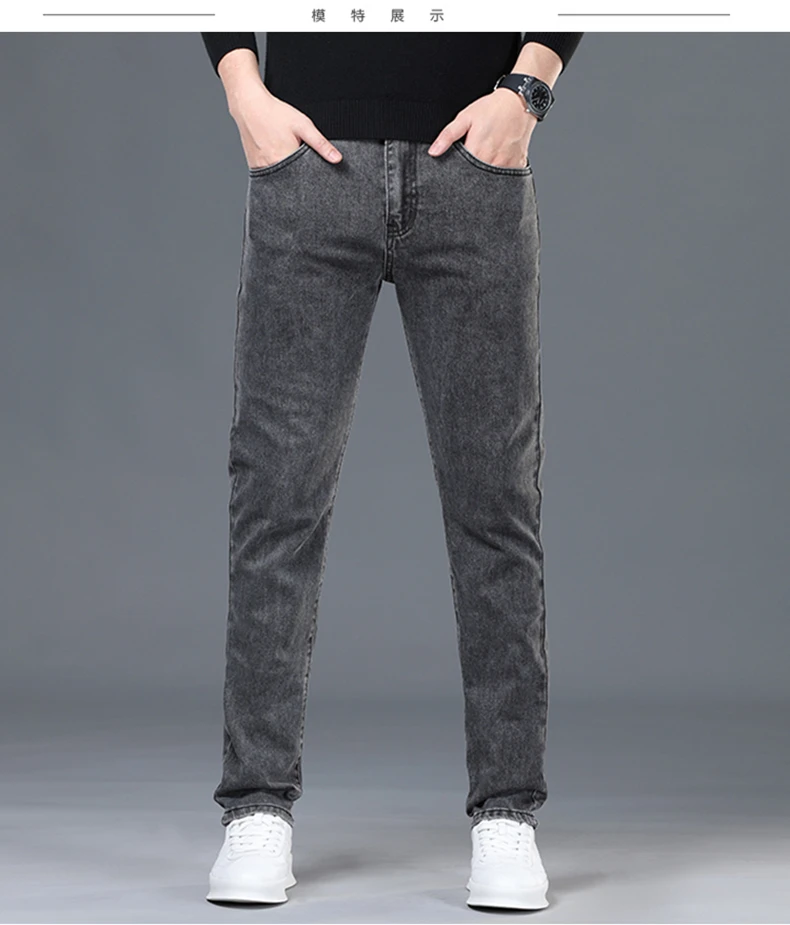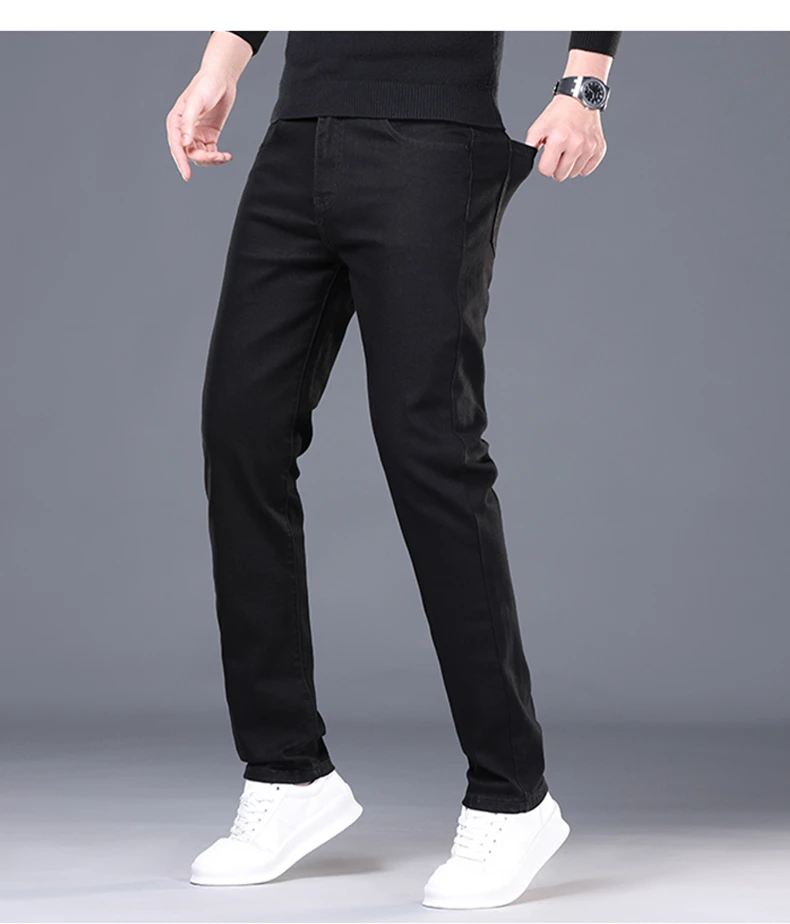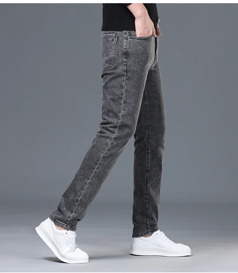 New Men Light Luxury Stretch Slim Fit Pants Comfortable Soft Business Fashion Straight Casual Denim Trousers Male Brand Clothing
