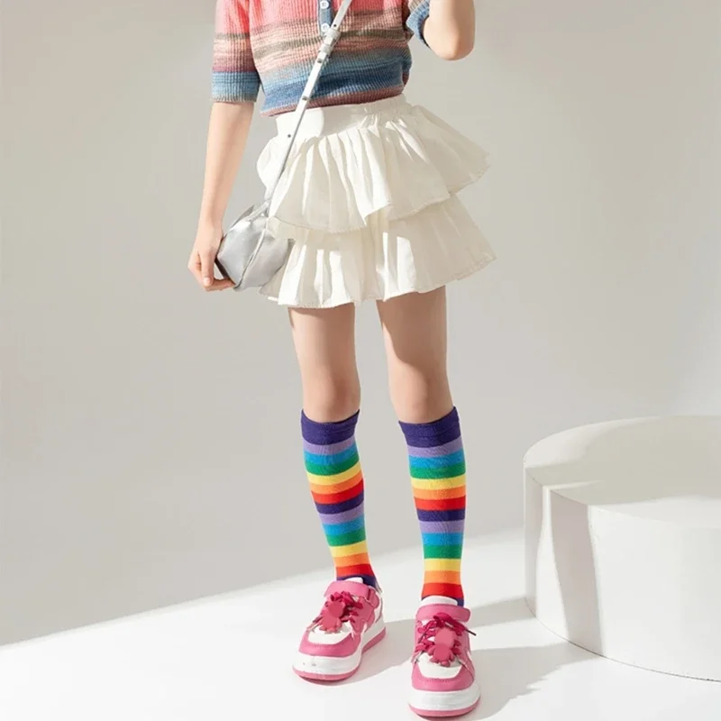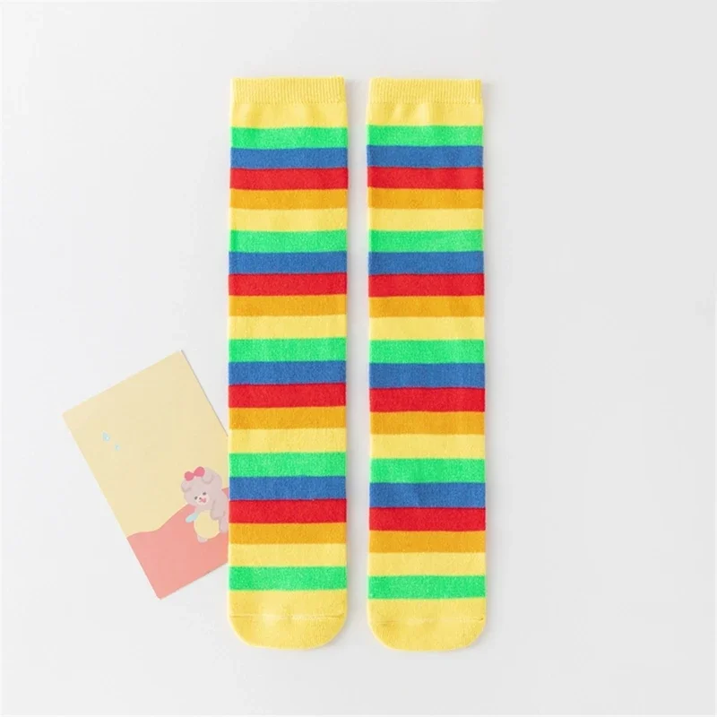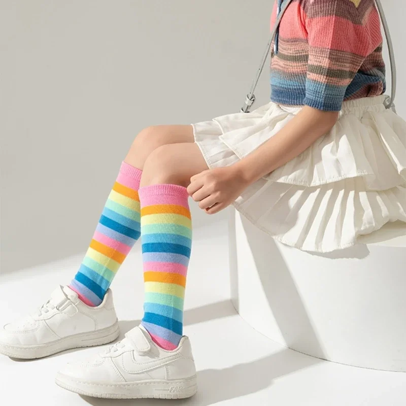 Spring Autumn Children’s Long Stockings Rainbow Stripped Teen Girls Christmas Cosplay Party Socks Kids Girls Knee High Socks