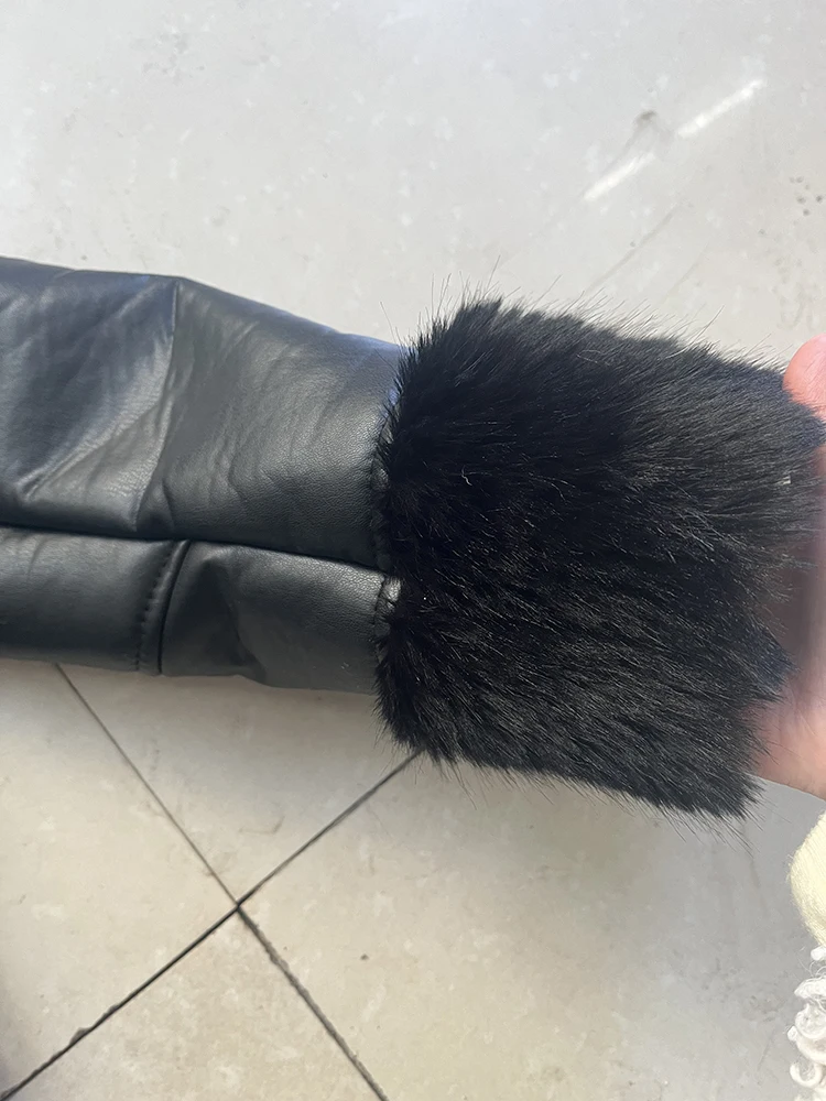 Women's Moto Biker Zipper Jacket Winter Coat Faux Fur Bomber Leather Jacket Asymmetric Top Outerwear Women's Clothing Brown Body