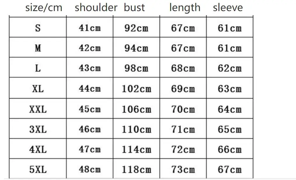 S ,M ,L ,XL ,XXL ,XXXL ,4XL ,5XL |
